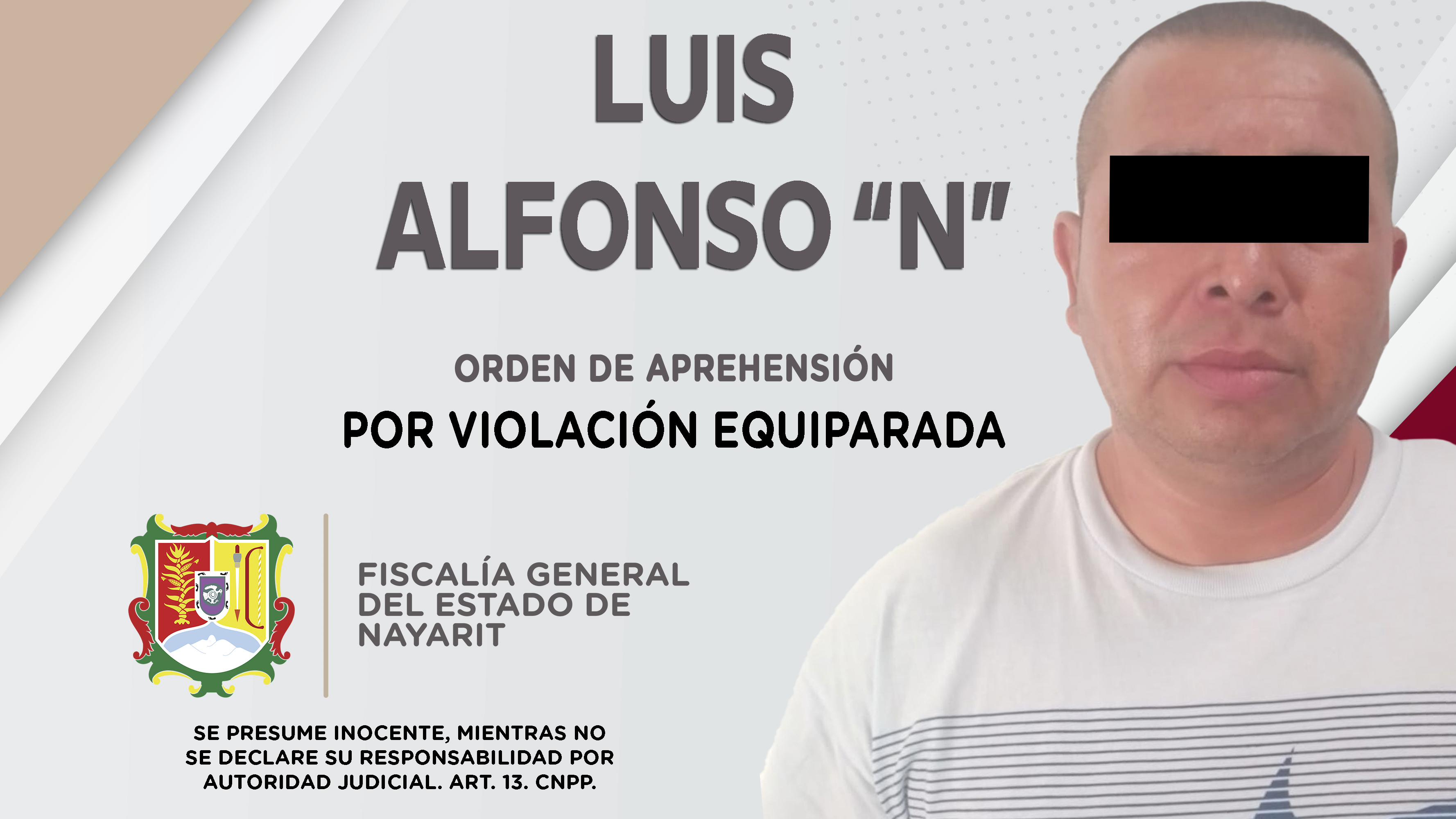 Personal de la Agencia de Investigación Criminal de Nayarit dio cumplimiento a una orden de aprehensión en esta ciudad contra Luis Alfonso “N”, por su presuntiva responsabilidad penal en hechos que la ley considera como delito de violación equipar...