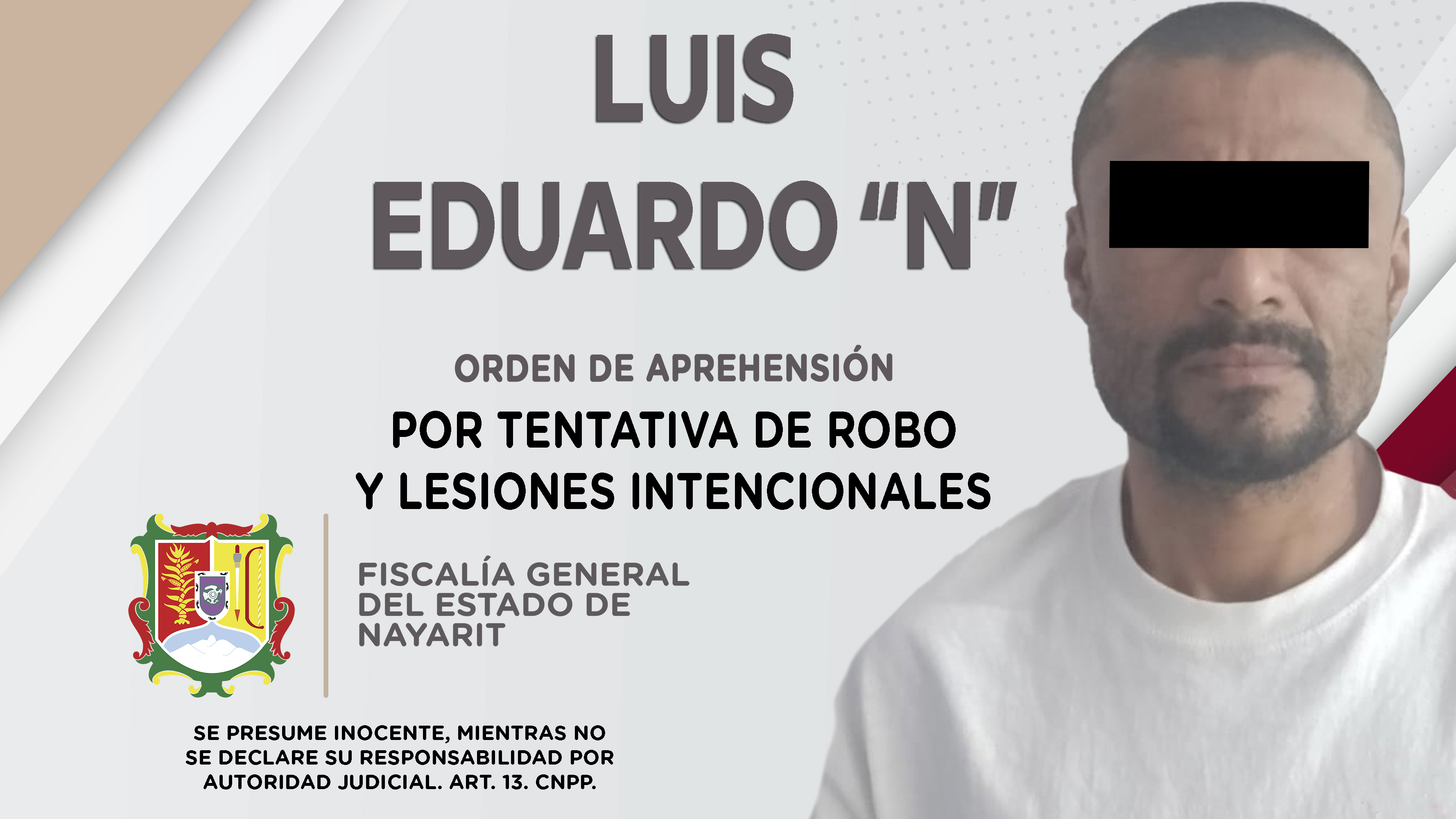 Fiscalía General de Nayarit a través de la Agencia de Investigación Criminal, ejecutó una orden de aprehensión en la ciudad de Tepic contra Luis Eduardo “N”, por su presunta participación en hechos que según apreciación de la ley encuadran lo...