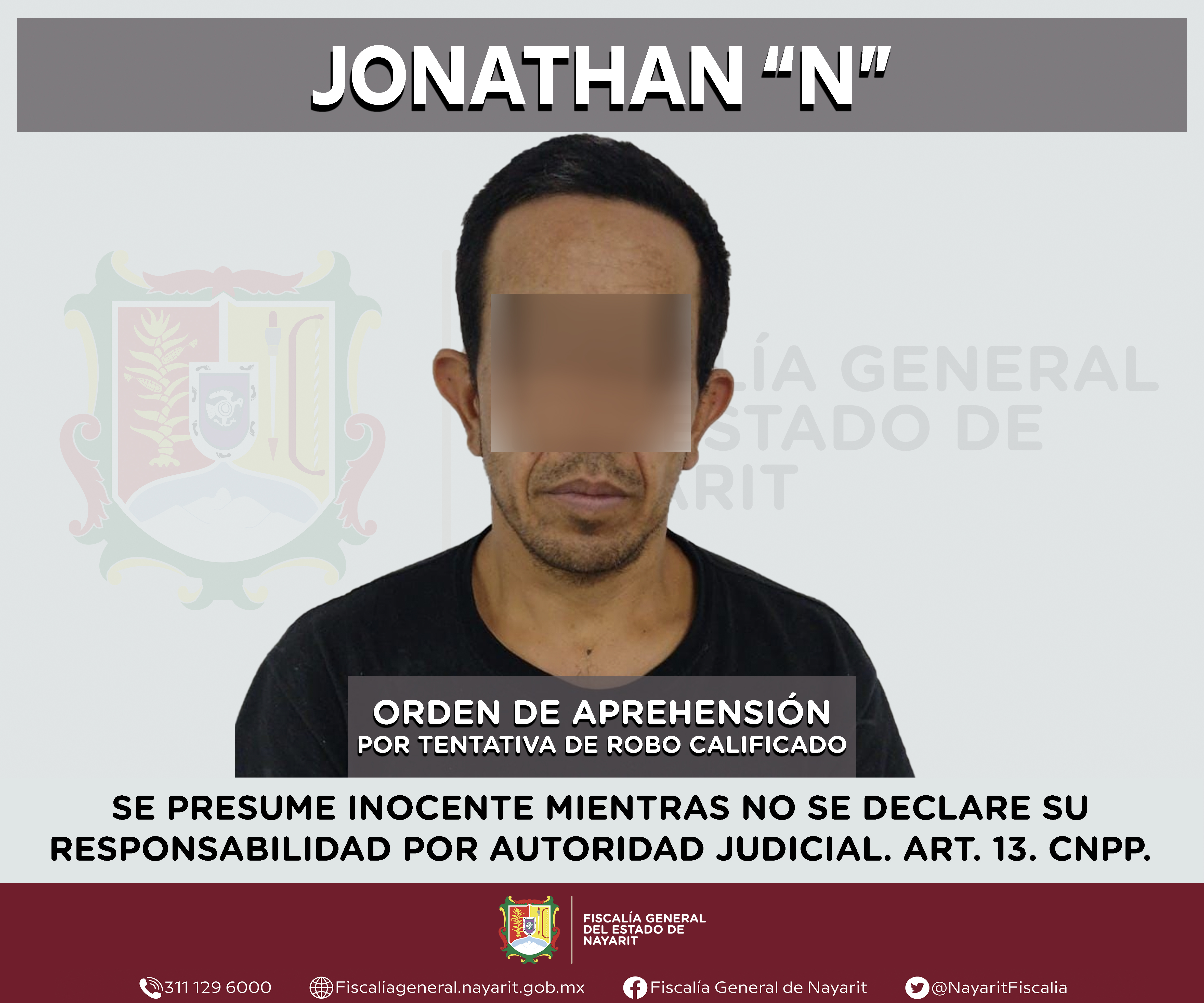 Elementos de la Agencia de Investigación Criminal de Nayarit ejecutaron una orden de aprehensión contra Jonathan “N”, por su presunta participación en hechos que según apreciación de la ley encuadran el delito de robo calificado en grado de tent...