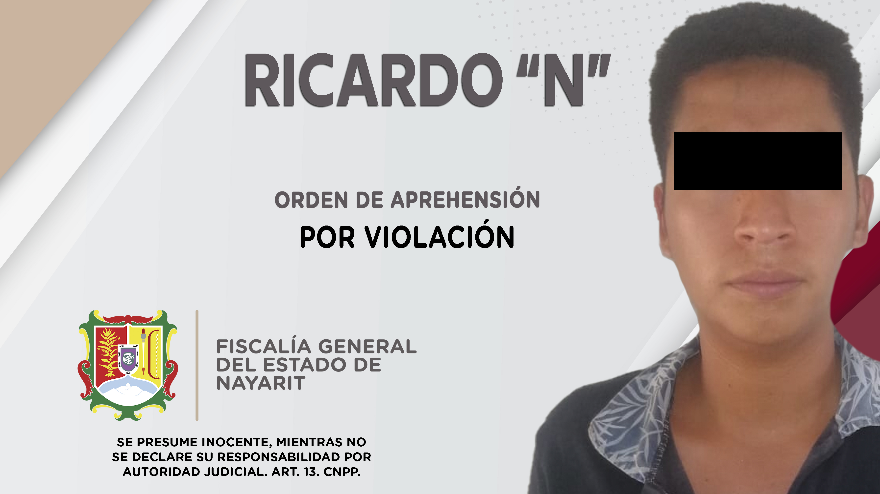 Fiscalía General de Nayarit a través de la Agencia de Investigación Criminal, ejecutó una orden de aprehensión en el municipio de Huajicori contra Ricardo “N”, por su presunta participación en hechos que según apreciación de la ley encuadran ...