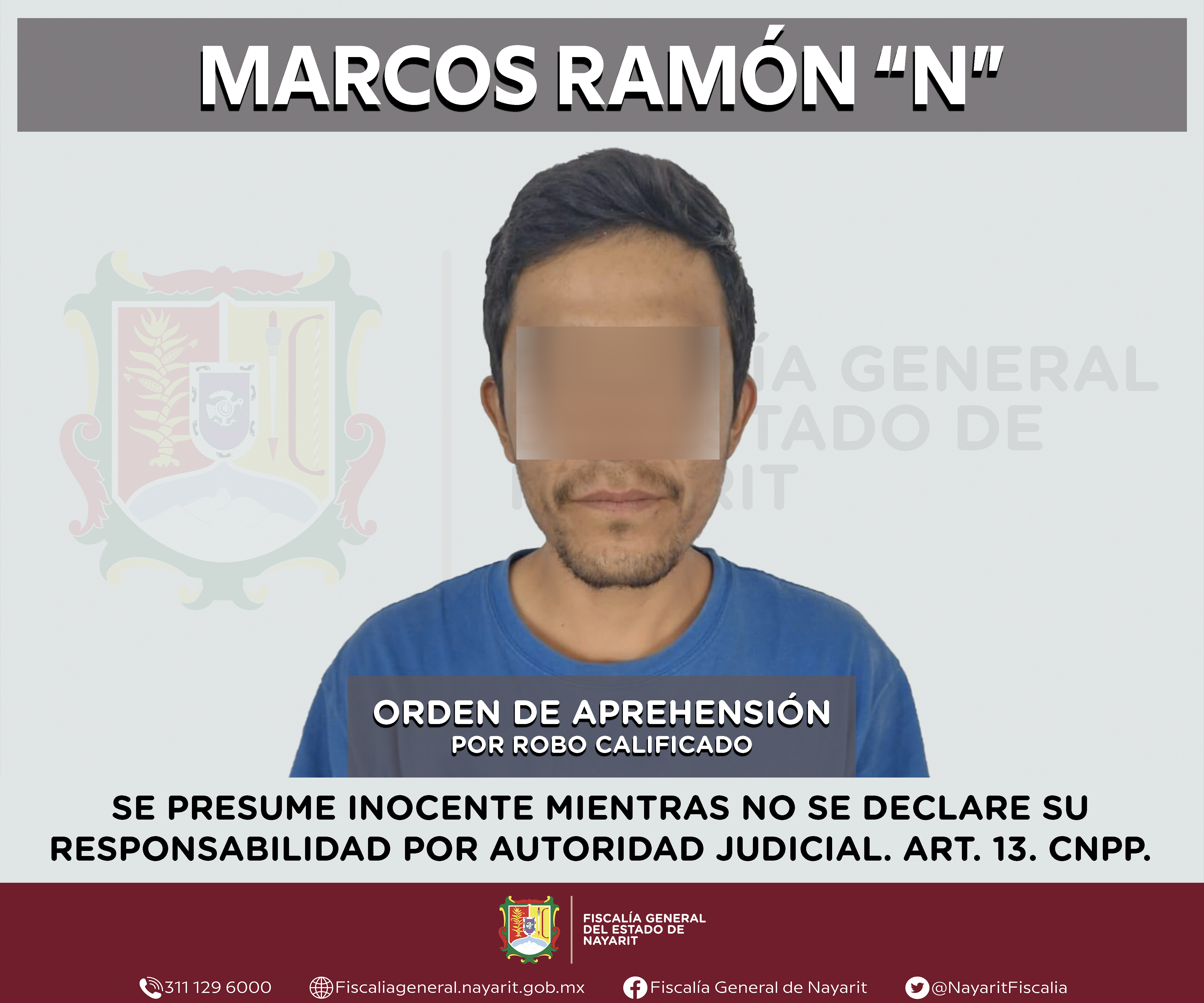 Elementos de la Agencia de Investigación Criminal de Nayarit ejecutaron una orden de aprehensión en la capital nayarita contra Marcos Ramón “N”, por su presunta participación en hechos que según apreciación de la ley configuran el delito de rob...