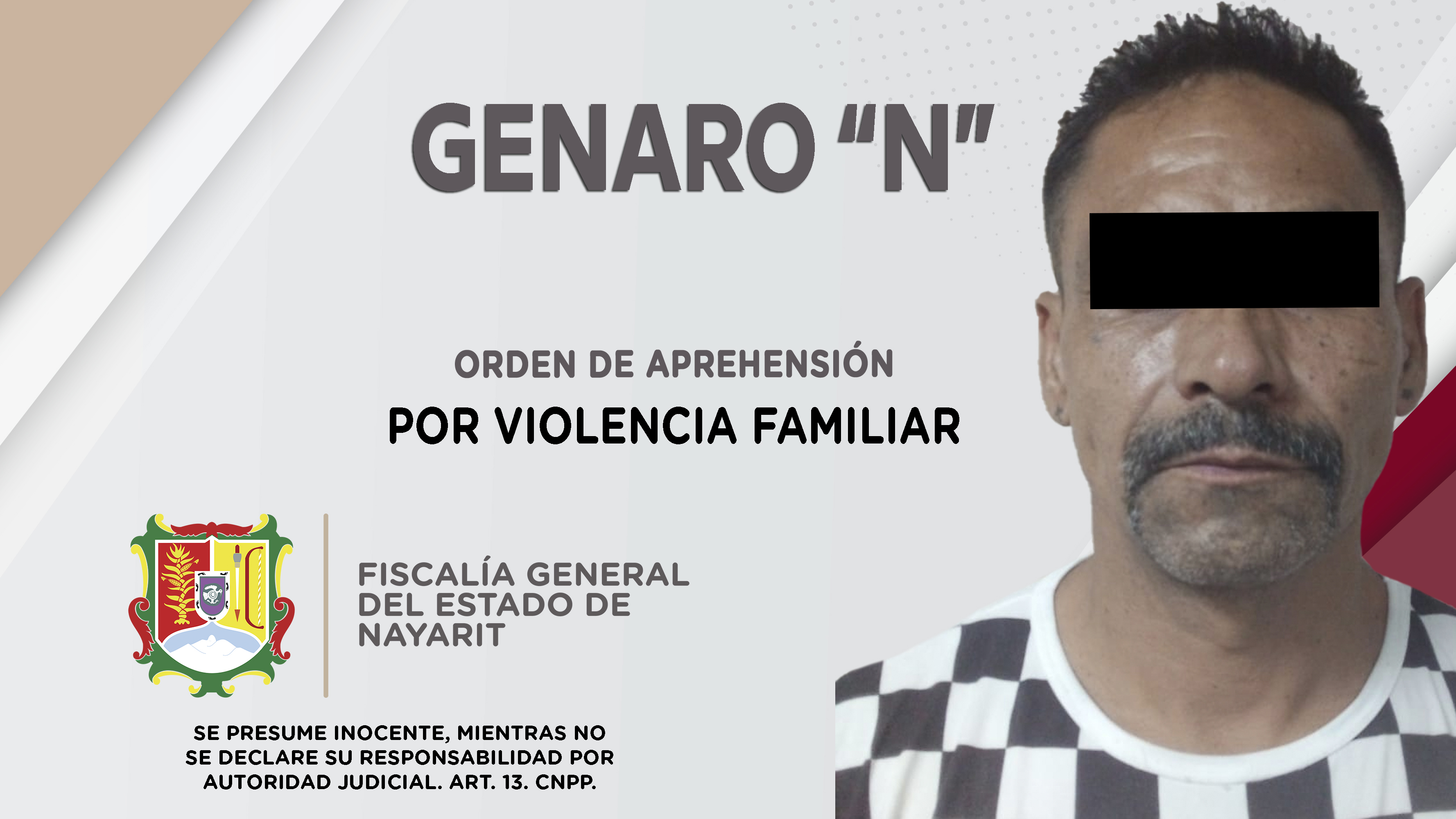 Personal de la Agencia de Investigación Criminal de Nayarit dio cumplimiento a una orden de aprehensión en la ciudad de Tepic contra Genaro “N”, por su presuntiva responsabilidad penal en hechos que la ley considera como delito de violencia familia...