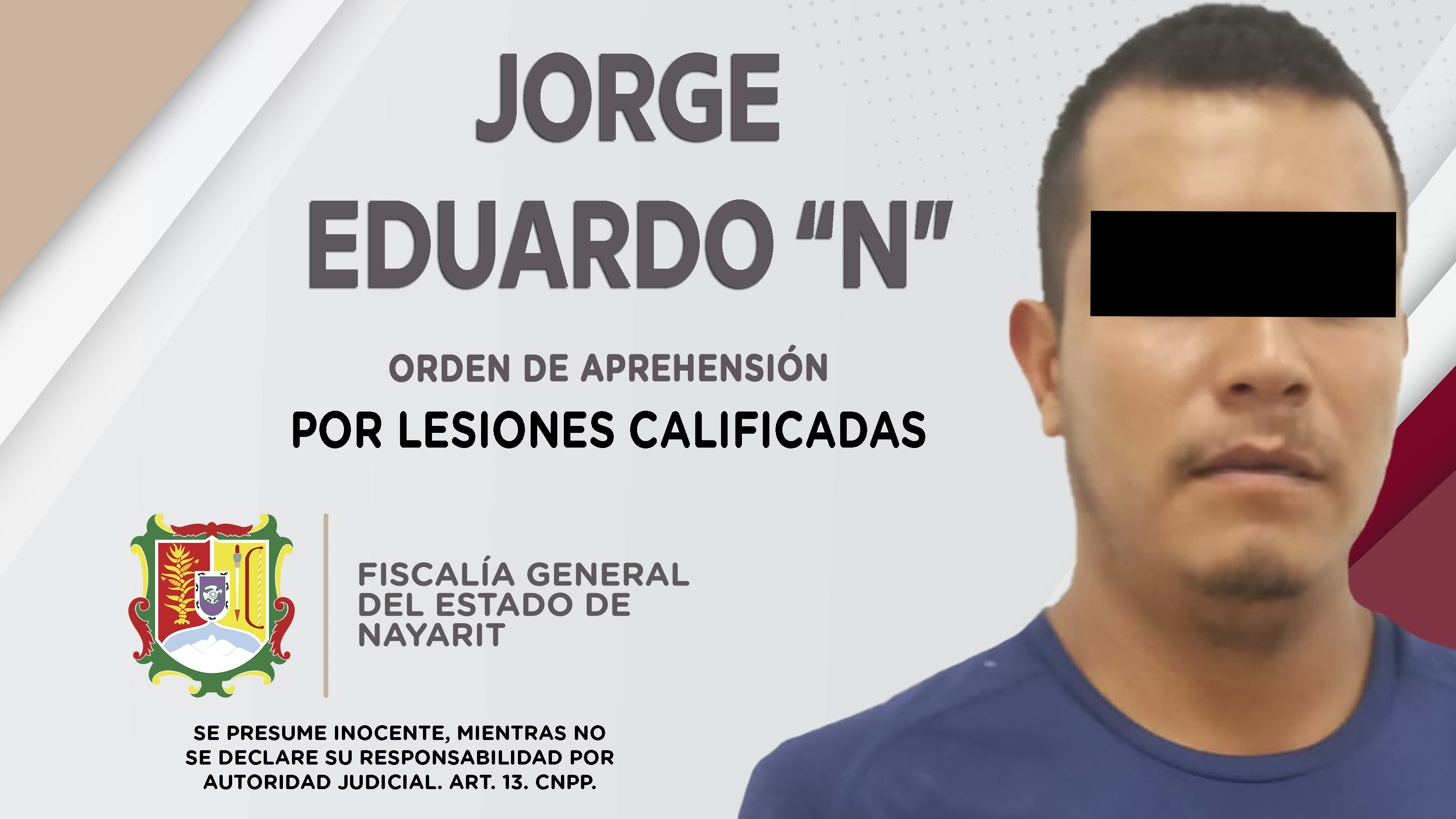 Personal de la Agencia de Investigación Criminal de Nayarit dio cumplimiento a una orden de aprehensión en el poblado Valle de Banderas, municipio de Bahía de Banderas contra Jorge Eduardo “N”, por su presuntiva responsabilidad penal en hechos que...