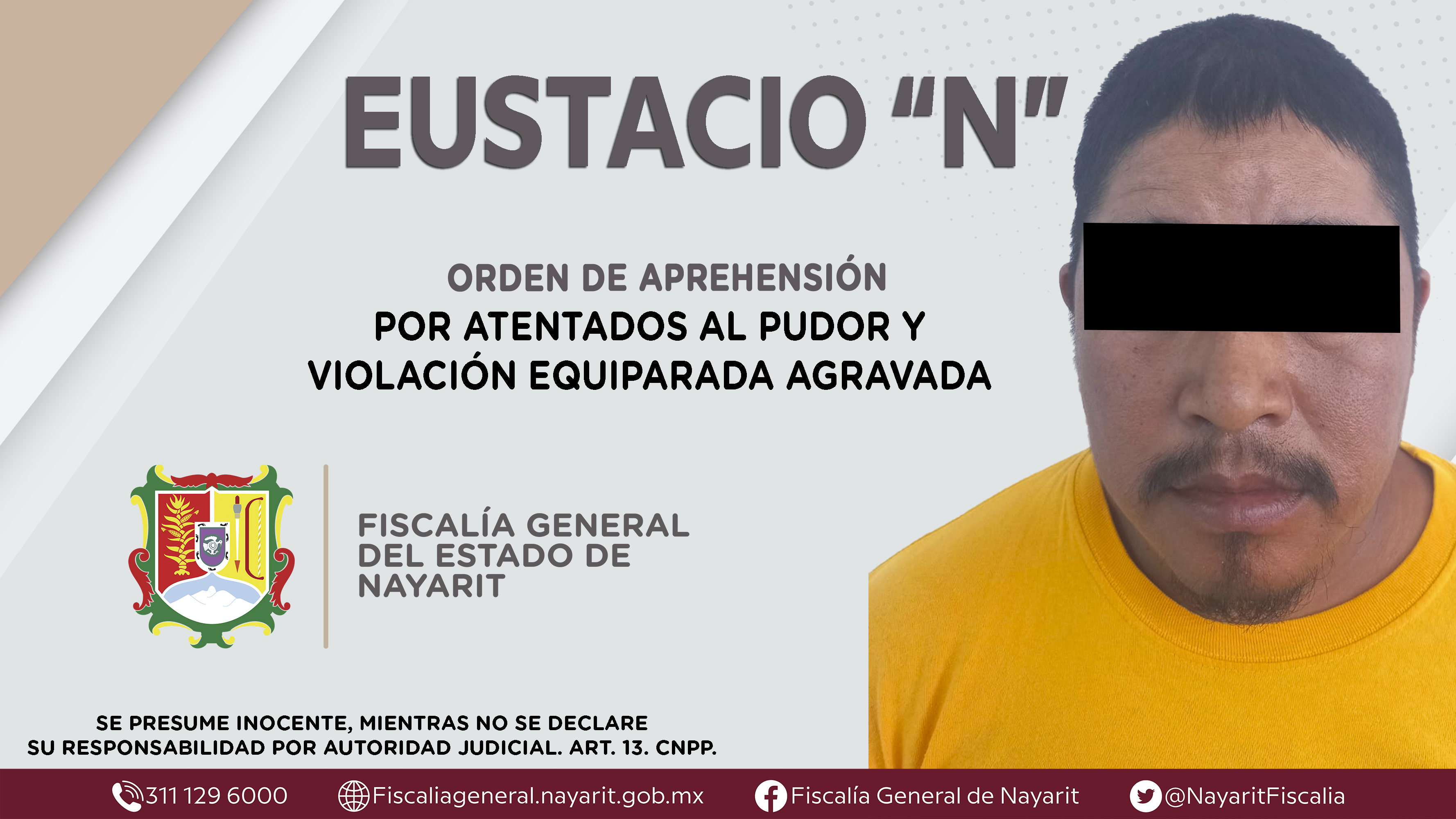 Elementos de la Agencia de Investigación Criminal de Nayarit ejecutaron una orden de aprehensión en la localidad La Labor, municipio de Santa María del Oro contra Eustacio “N”, por su presuntiva participación en hechos que según apreciación de ...