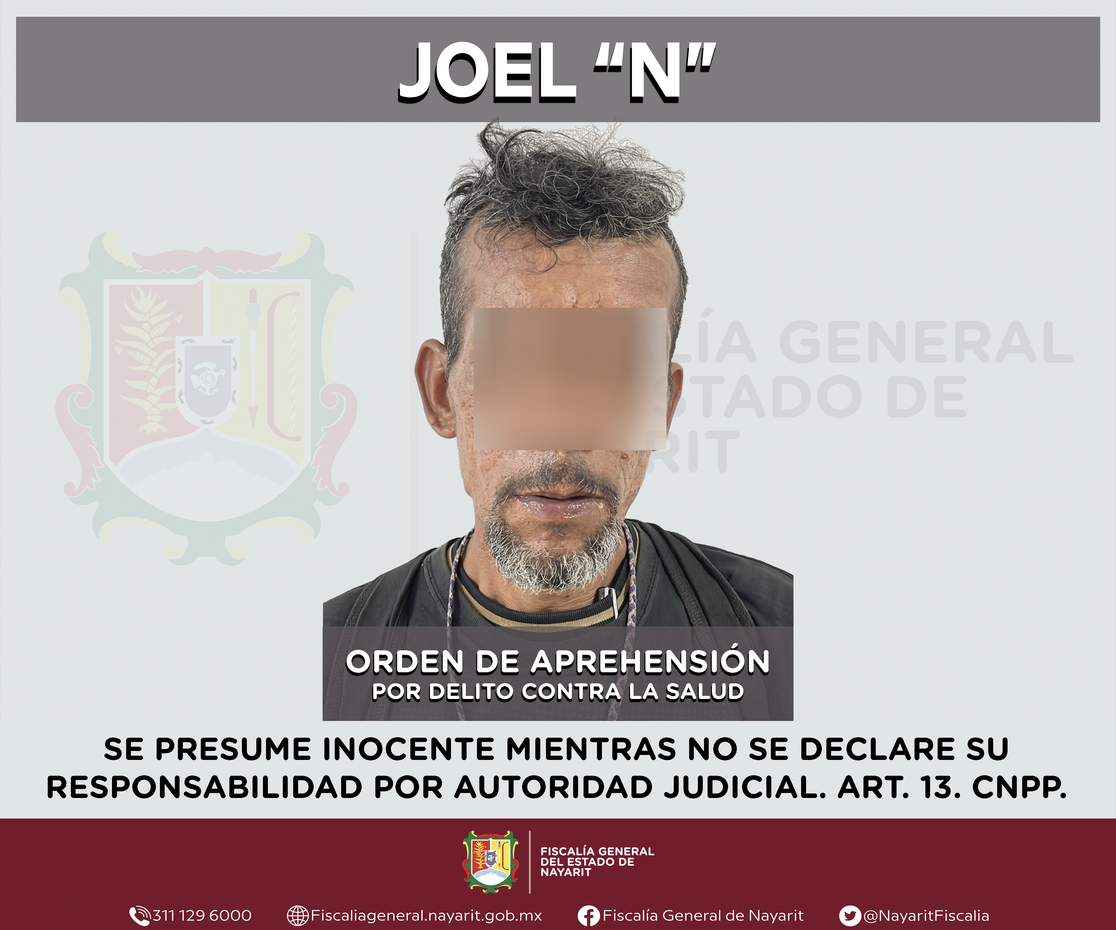 La Fiscalía General del estado de Nayarit a través de la Agencia de Investigación Criminal ejecutó una orden de aprehensión en la capital nayarita contra Joel “N”, por su presunta participación en hechos que según valoración de la ley encuadr...