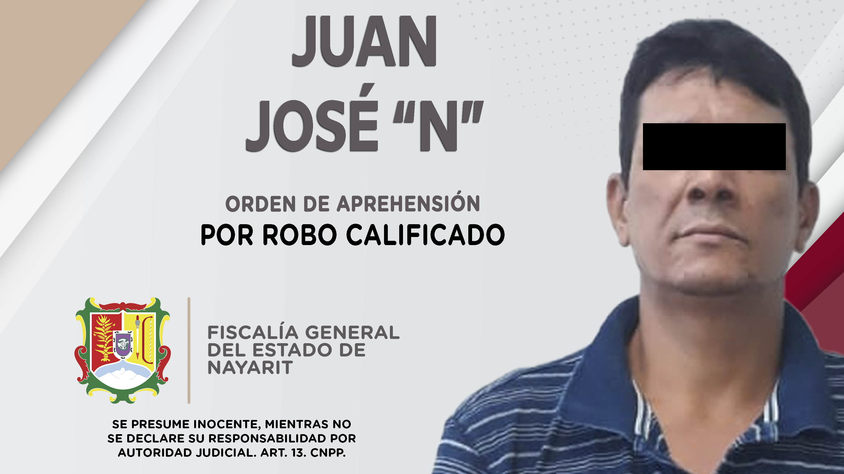 Personal de la Agencia de Investigación Criminal de Nayarit dio cumplimiento a una orden de aprehensión en el municipio de Bahía de Banderas contra Juan José “N”, por su presuntiva responsabilidad penal en hechos que la ley considera como delito ...
