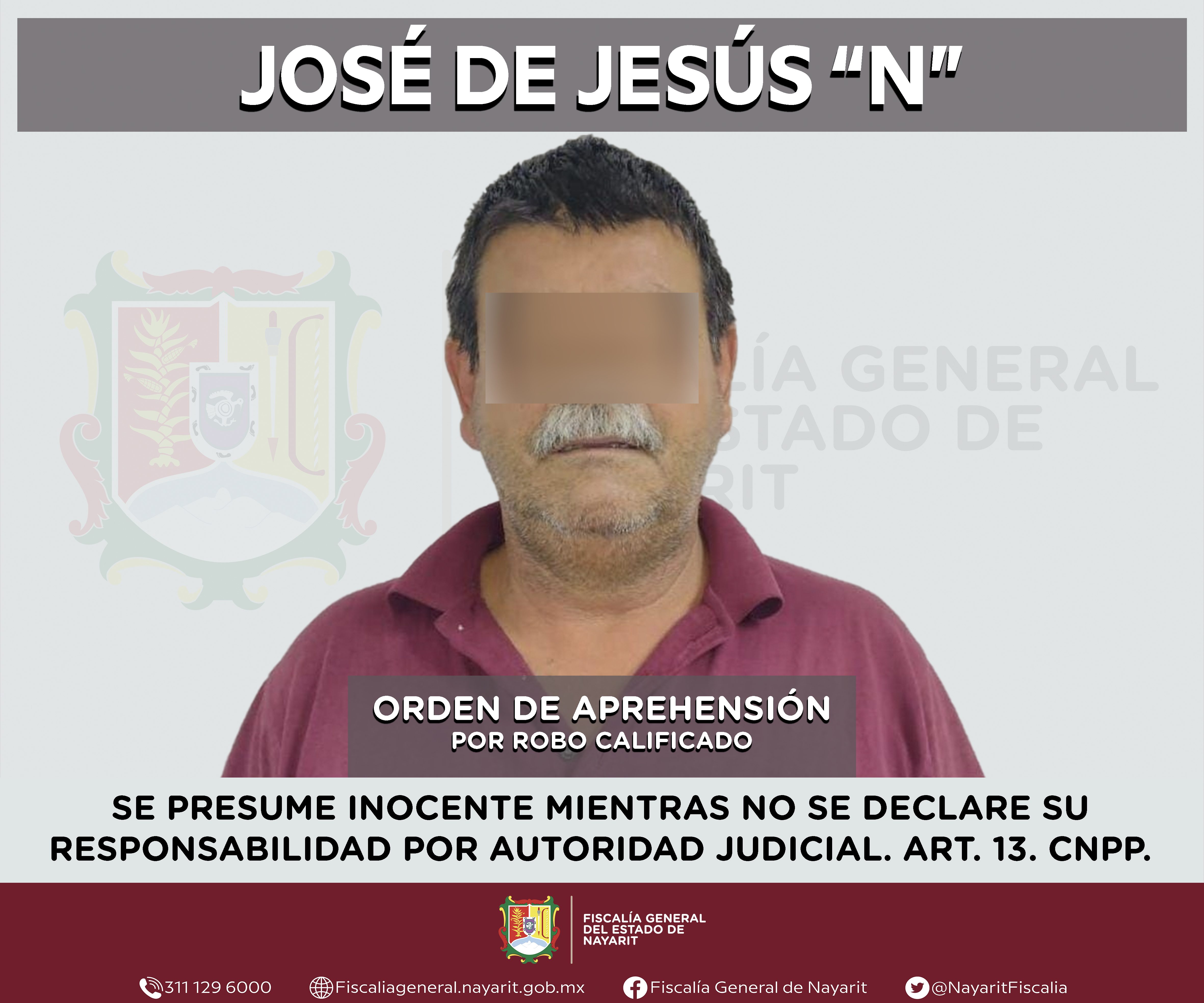 Elementos de la Agencia de Investigación Criminal de Nayarit ejecutaron una orden de aprehensión en la ciudad de Tepic contra José de Jesús “N”, por su presunta participación en hechos que según valoración de la ley encuadran el delito de robo...