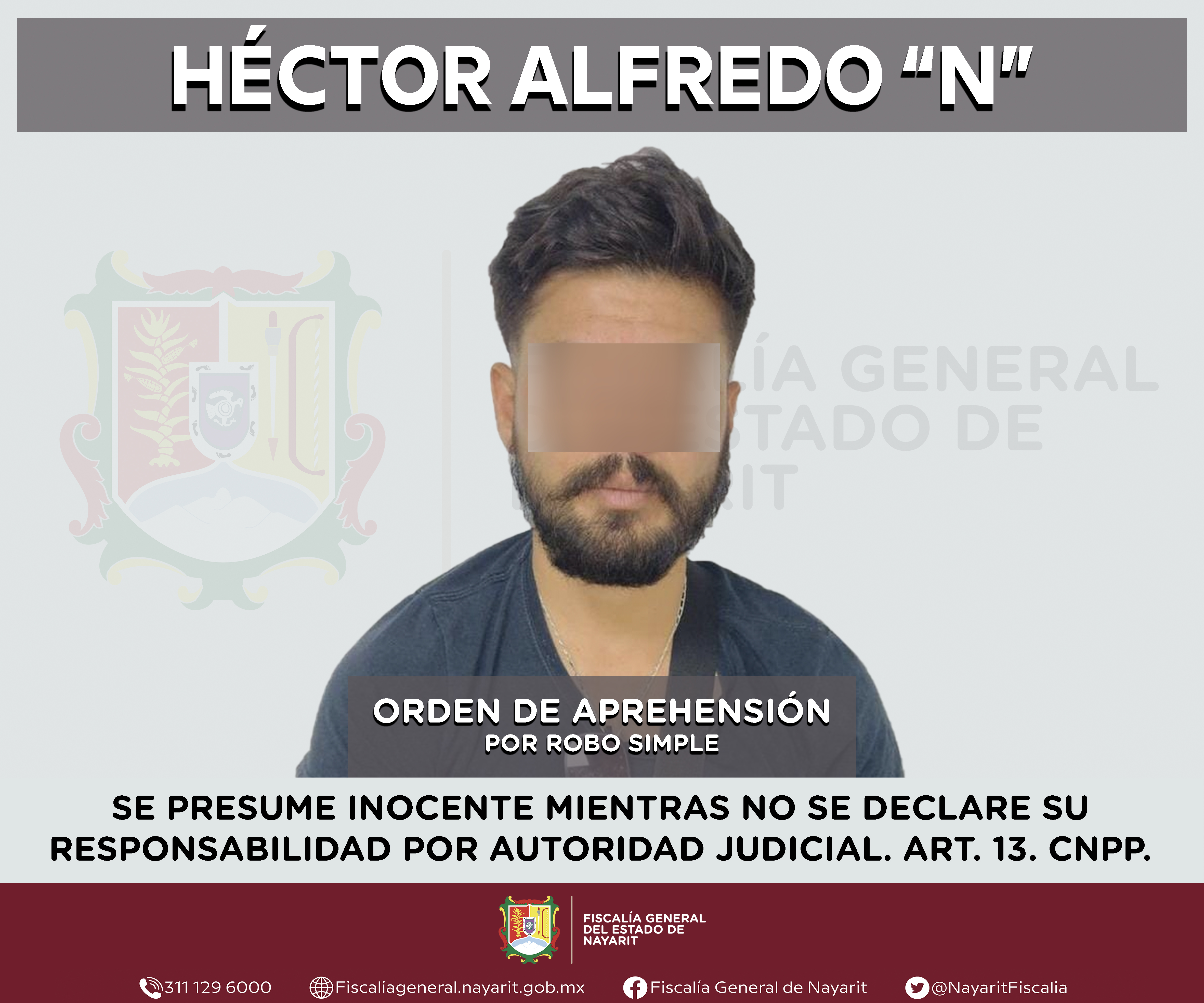 Elementos de la Agencia de Investigación Criminal de Nayarit ejecutaron una orden de aprehensión en la ciudad de Tepic contra Héctor Alfredo “N”, por su presunta participación en hechos que según apreciación de la ley configuran el delito de ro...