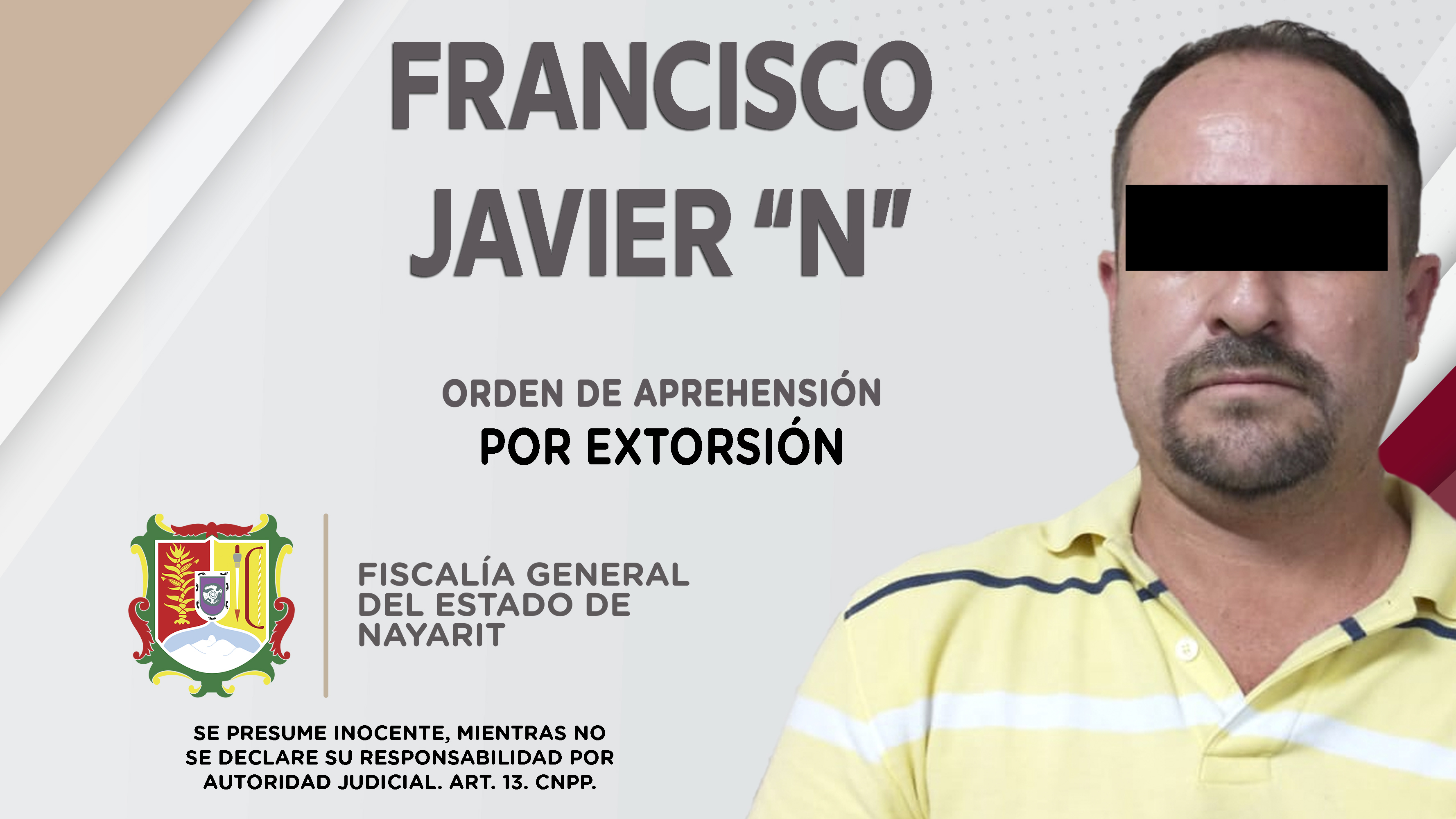 Personal de la Agencia de Investigación Criminal de Nayarit dio cumplimiento a una orden de aprehensión en esta ciudad contra Francisco Javier “N”, por su presuntiva responsabilidad penal en hechos que la ley considera como delito de extorsión, co...