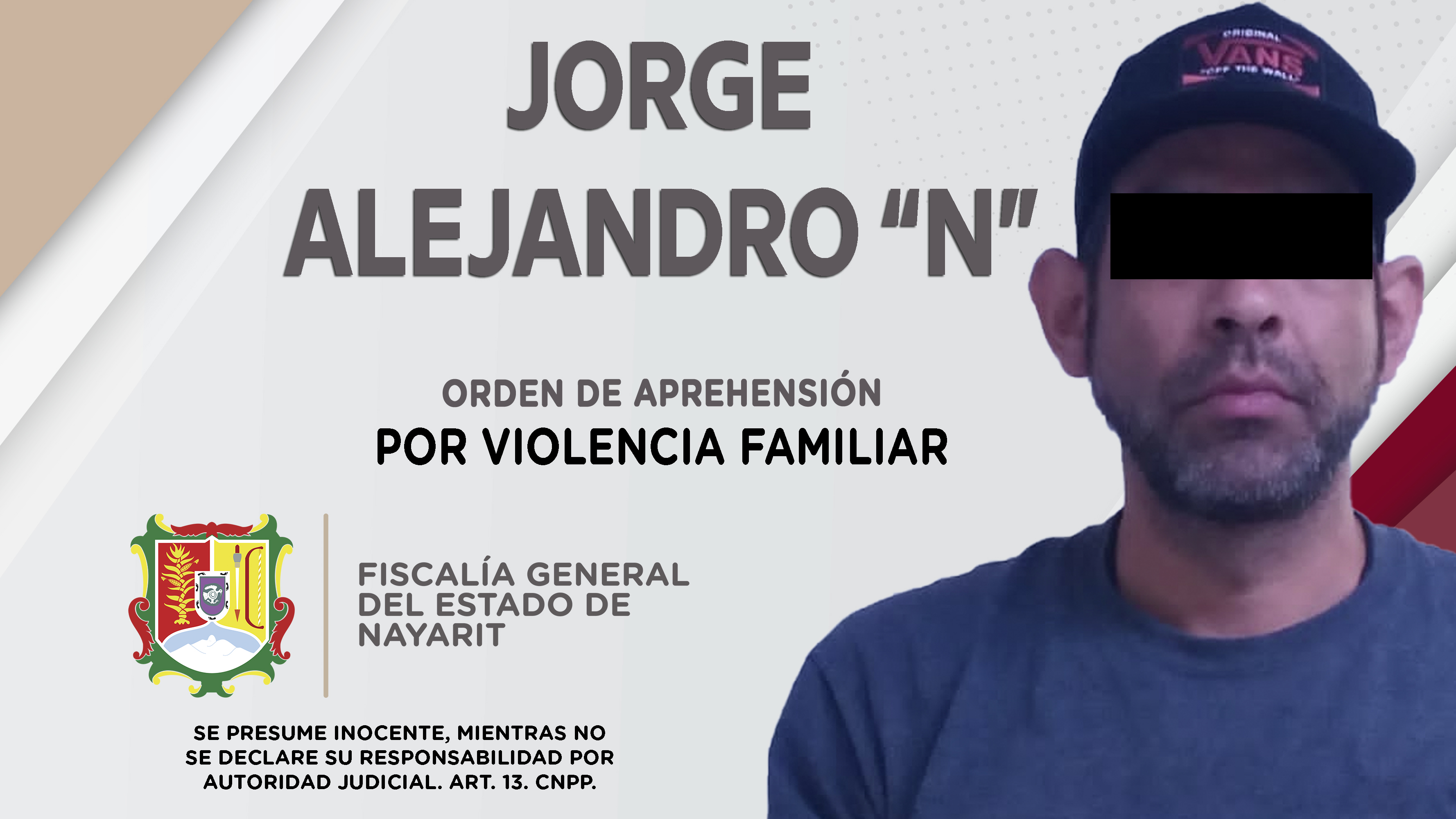 Fiscalía General de Nayarit a través de la Agencia de Investigación Criminal, ejecutó una orden de aprehensión en el municipio de Xalisco contra Jorge Alejandro “N”, por su presunta participación en hechos que según apreciación de la ley encu...