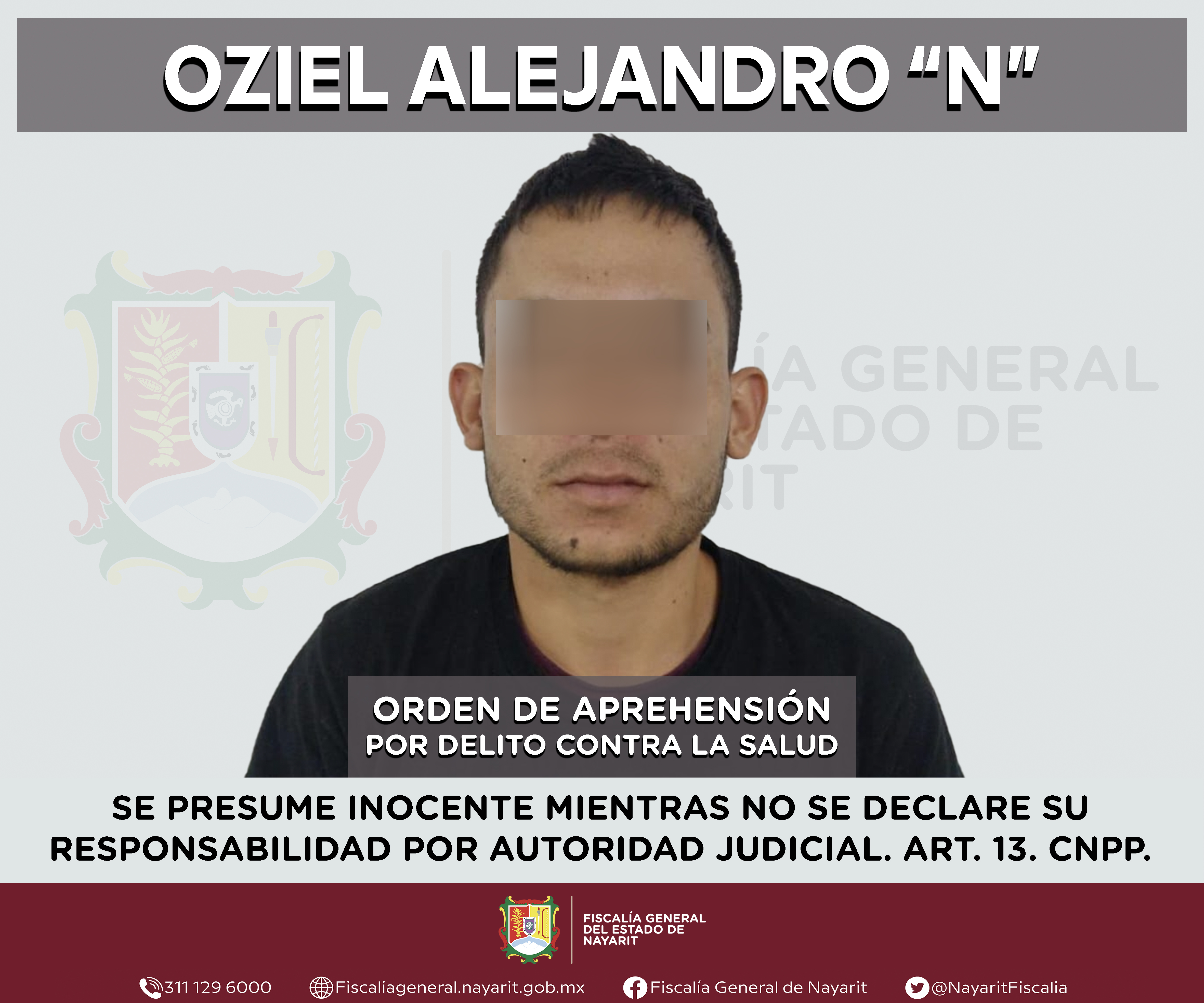 La Fiscalía General del estado de Nayarit a través de la Agencia de Investigación Criminal ejecutó una orden de aprehensión en la ciudad de Tepic contra Oziel Alejandro “N”, por su presunta participación en hechos que según valoración de la l...