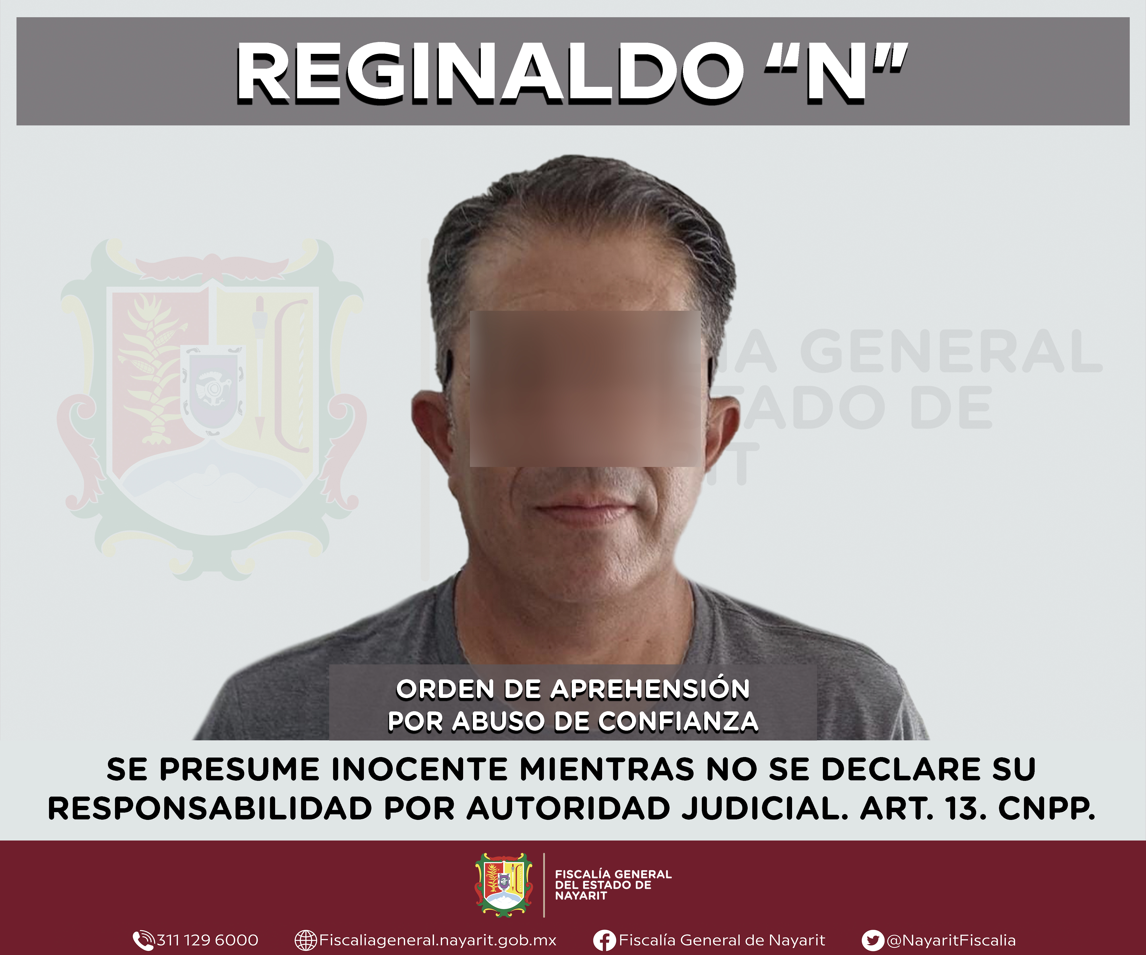 Elementos de la Agencia de Investigación Criminal de Nayarit ejecutaron una orden de aprehensión en la ciudad de Tepic contra Reginaldo “N”, por su presunta participación en hechos que según apreciación de la ley encuadran el delito de abuso de ...