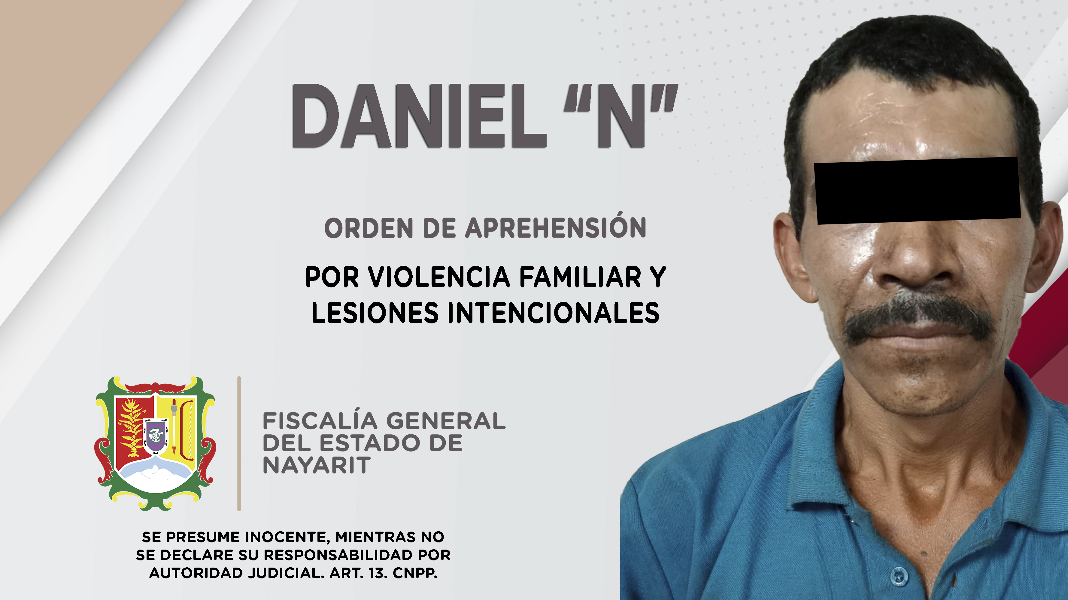 Elementos de la Agencia de Investigación Criminal de Nayarit dieron cumplimiento a una orden de aprehensión que se obsequió en el poblado San Cayetano, municipio de Tepic contra Daniel “N”, por su probable participación en hechos que la ley calif...