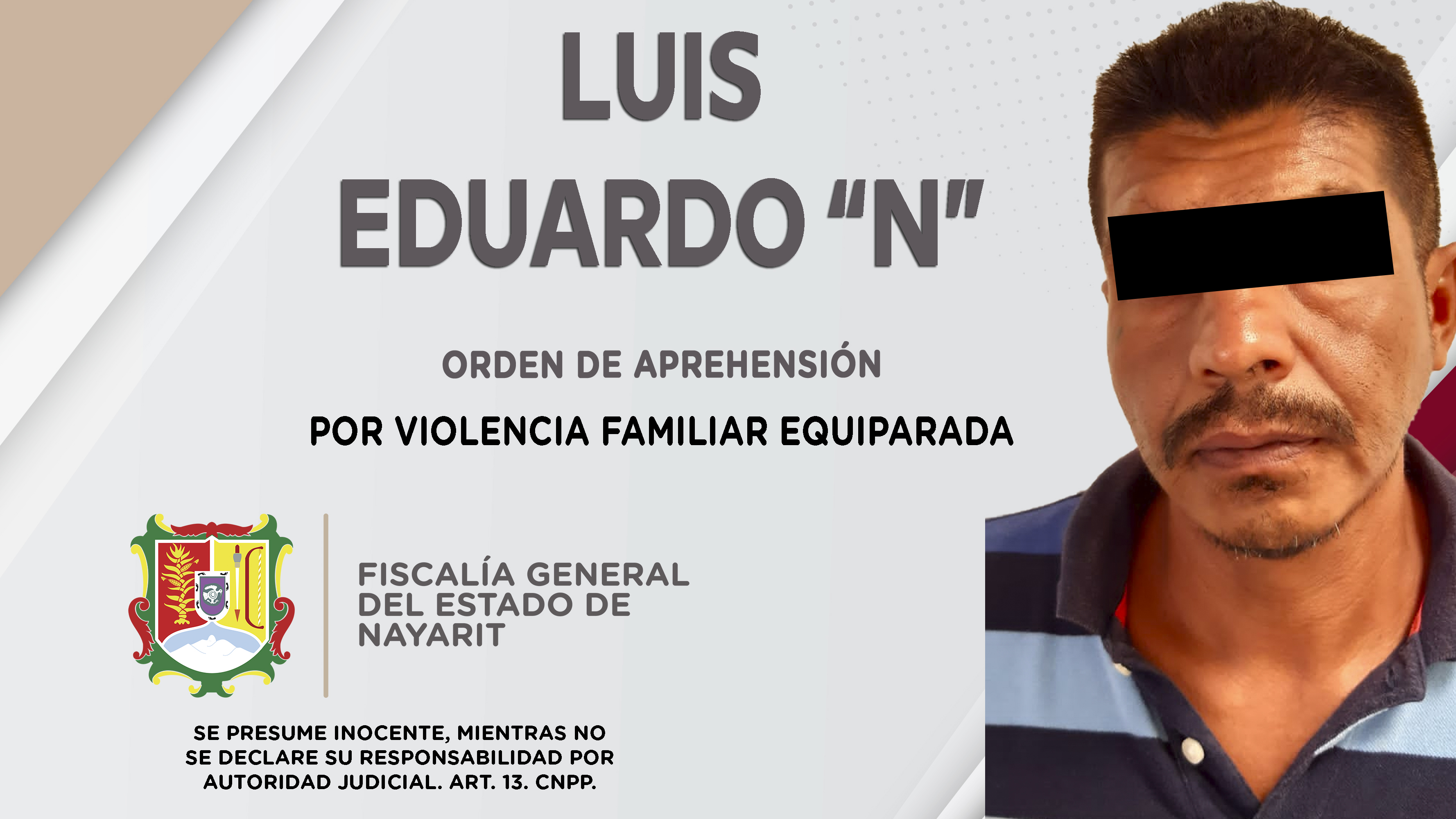 Elementos de la Agencia de Investigación Criminal de Nayarit dieron cumplimiento a una orden de aprehensión que se obsequió en la ciudad de Tepic contra Luis Eduardo “N”, por su probable participación en hechos que la ley califica como delito de ...