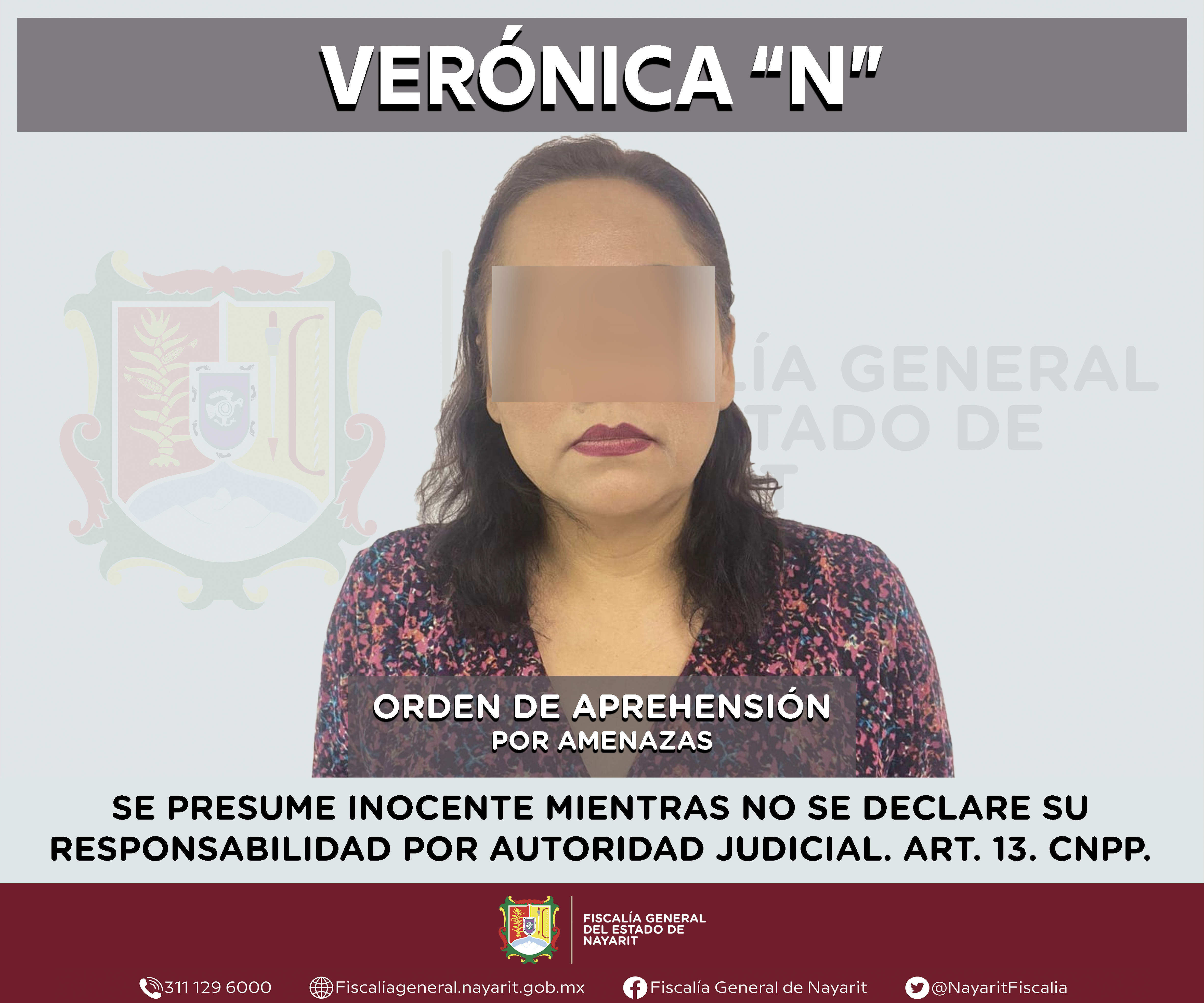 La Fiscalía General del estado de Nayarit a través de la Agencia de Investigación Criminal ejecutó una orden de aprehensión en la ciudad de Tepic contra Verónica “N”, por su presunta participación en hechos que según valoración de la ley enc...