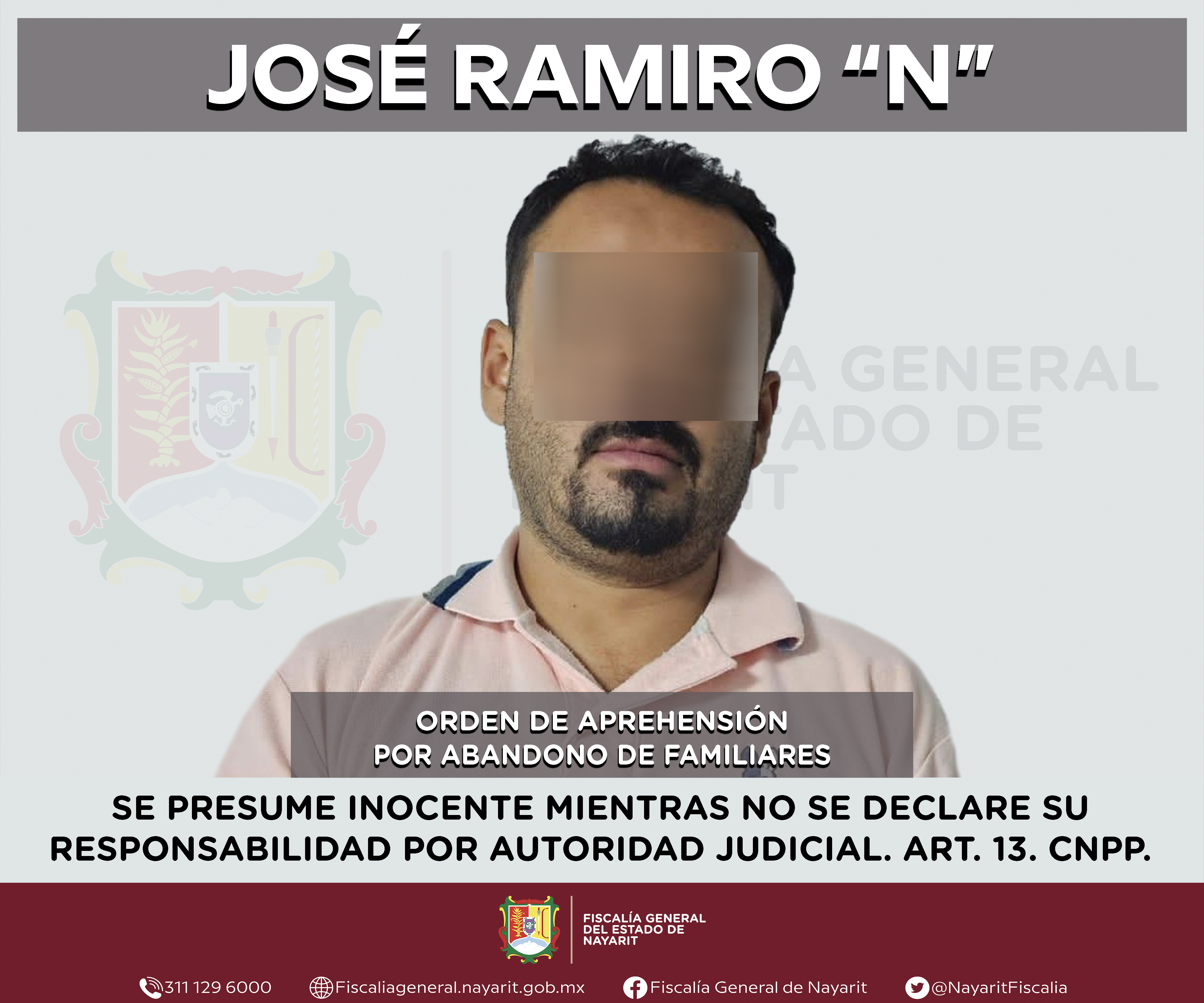 Elementos de la Agencia de Investigación Criminal de Nayarit ejecutaron una orden de aprehensión en la ciudad de Tepic contra José Ramiro “N”, por su presunta participación en hechos que según apreciación de la ley encuadran el delito de abando...