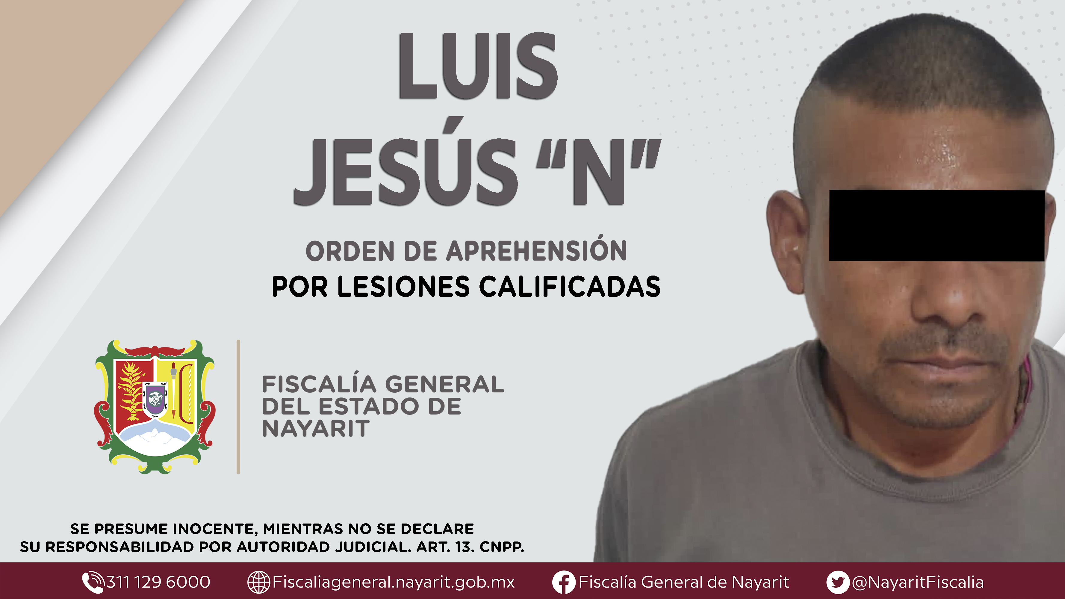 Elementos de la Agencia de Investigación Criminal de Nayarit ejecutaron una orden de aprehensión en el municipio de Santiago Ixcuintla contra Luis Jesús “N”, por su presunta participación en hechos que según apreciación de la ley configuran el ...