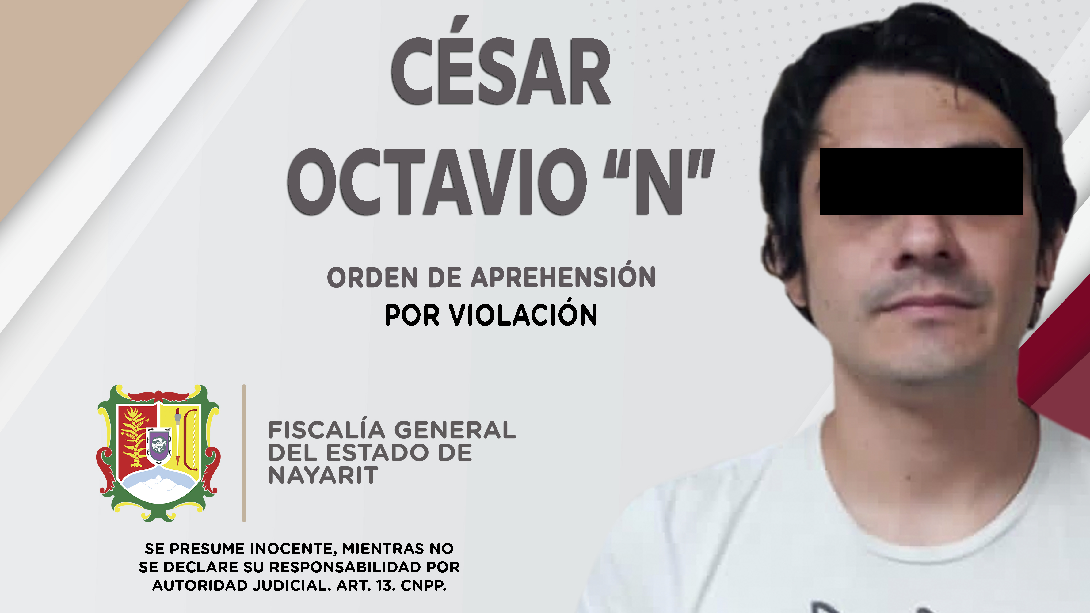 Elementos de la Agencia de Investigación Criminal de Nayarit dieron cumplimiento a una orden de aprehensión contra César Octavio “N”, por su probable participación en hechos que la ley califica como delito de violación, el cual fue cometido en a...