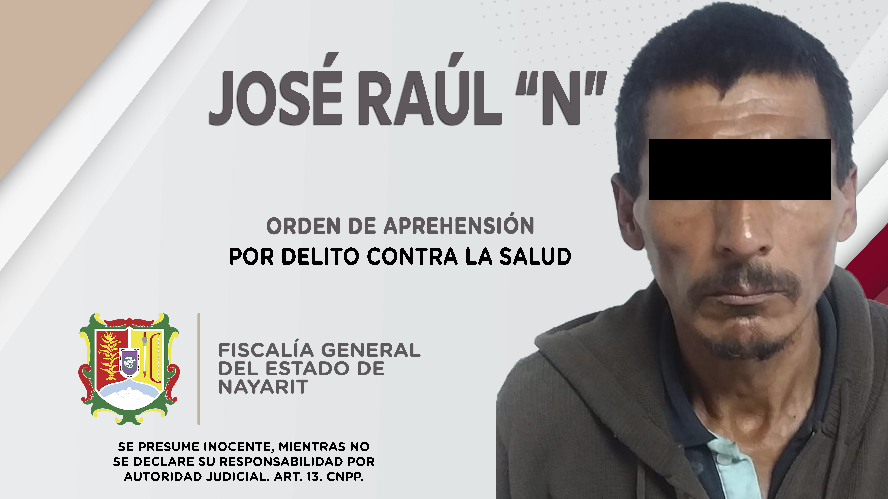 En la capital nayarita, elementos de la Agencia de Investigación Criminal de Nayarit ejecutaron una orden de aprehensión contra José Raúl “N”, por su probable participación en hechos que la ley califica como contra la salud en su modalidad de na...