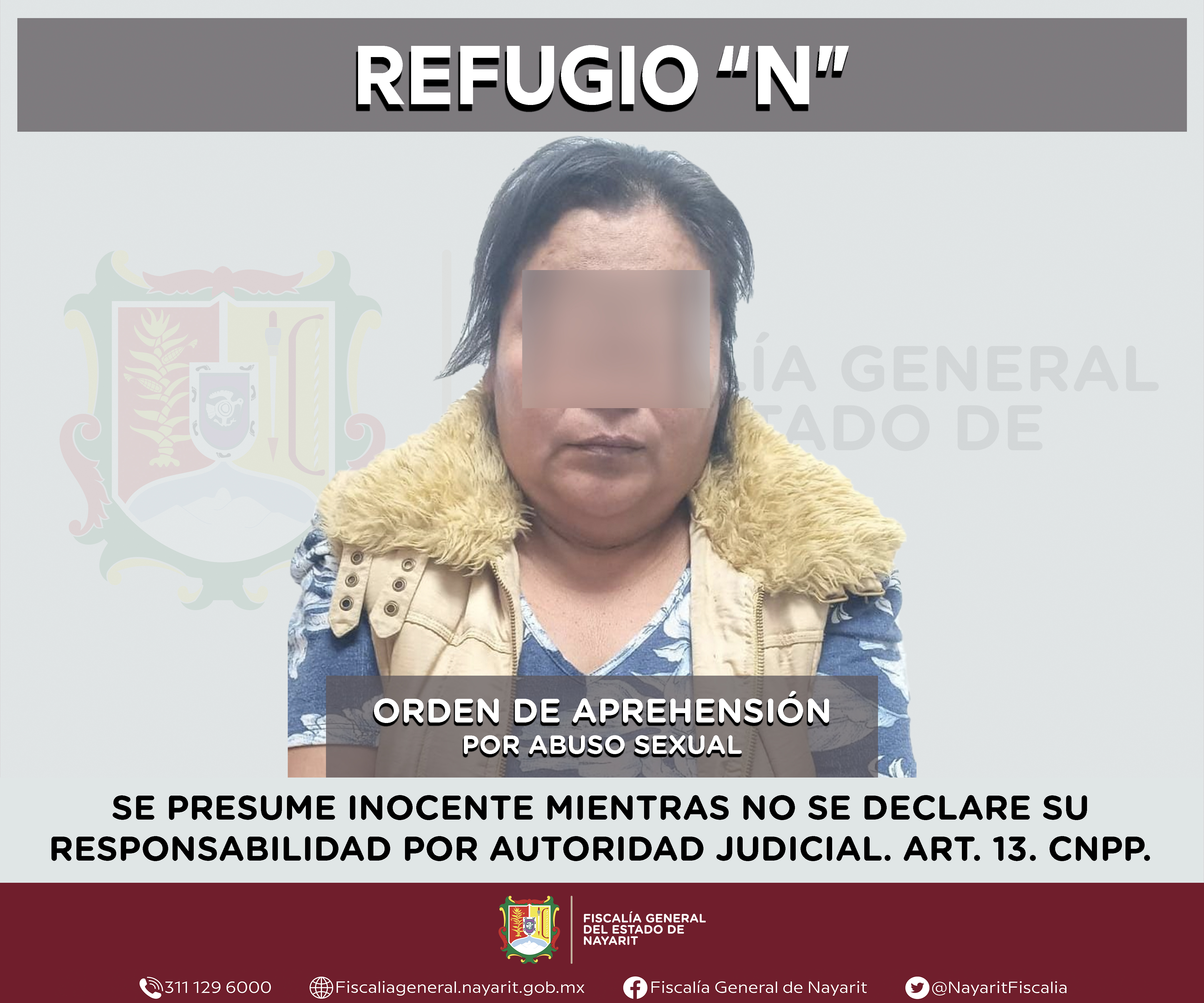 Elementos de la Agencia de Investigación Criminal de Nayarit ejecutaron una orden de aprehensión en la ciudad de Tepic contra Refugio “N”, por su presunta participación en hechos que según valoración de la ley configuran el delito de abuso sexua...