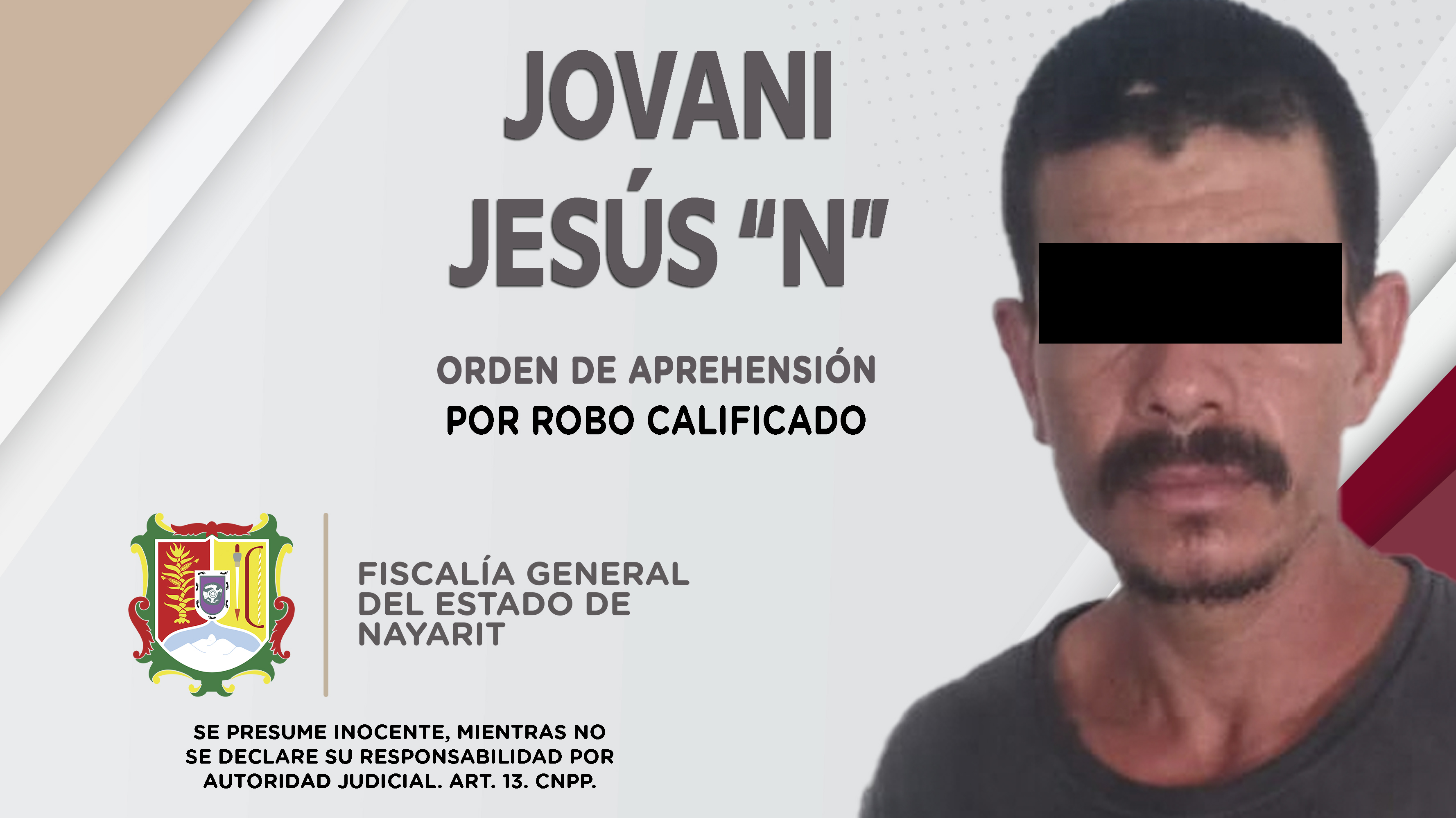 En la capital nayarita, elementos de la Agencia de Investigación Criminal de Nayarit ejecutaron una orden de aprehensión contra Jovani Jesús “N”, por su probable responsabilidad penal en hechos que la ley califica como robo calificado.\r\n\r\nEl i...