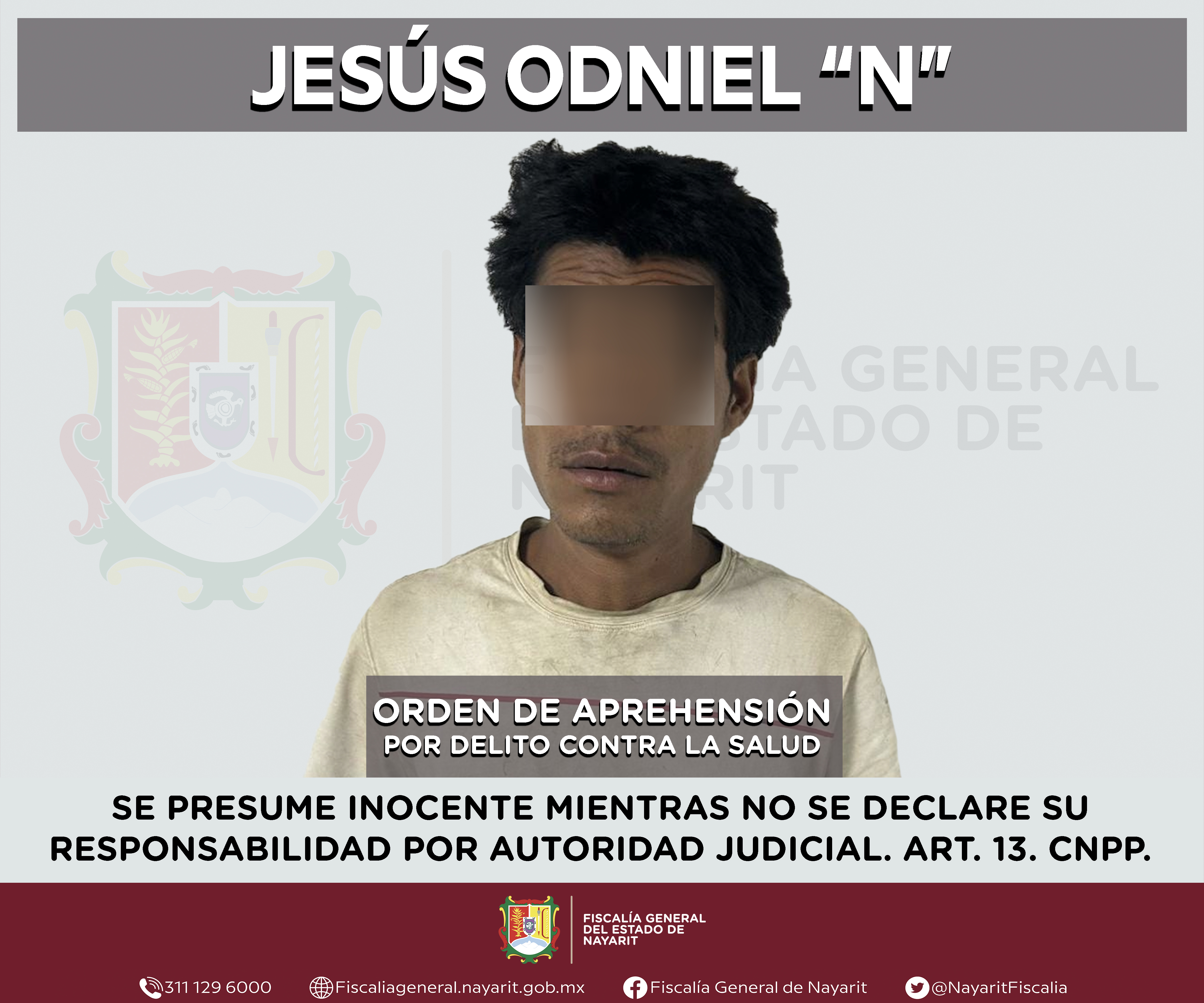 Elementos de la Agencia de Investigación Criminal de Nayarit ejecutaron una orden de aprehensión en la capital nayarita contra Jesús Odniel “N”, por su presunta participación en hechos que según valoración de la ley configuran el delito contra ...