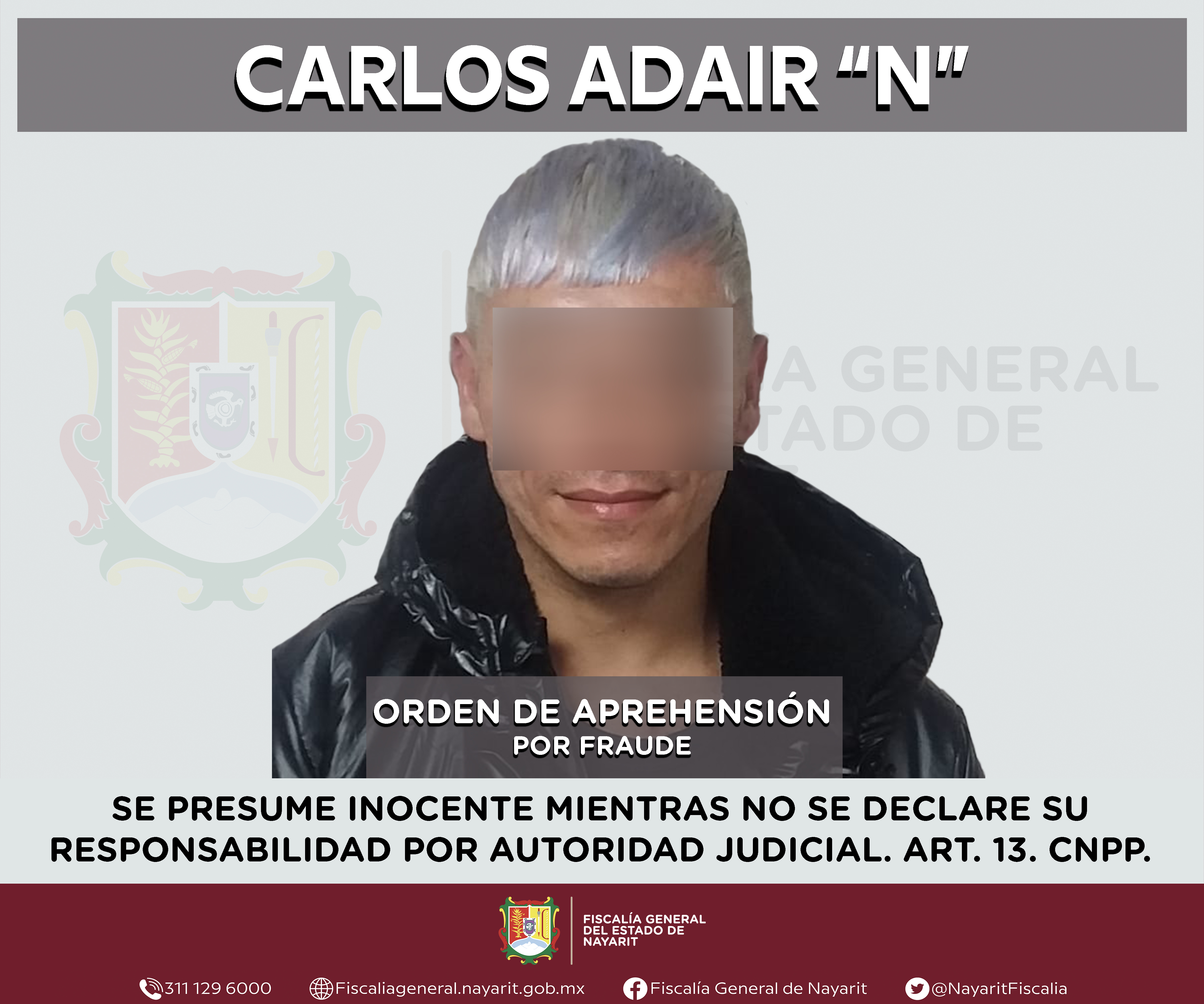 En el interior del Centro Federal de Readaptación Social (CEFERESO) No. 4 “El Rincón”, la Fiscalía General de Nayarit a través de la Agencia de Investigación Criminal ejecutó una orden de aprehensión contra Carlos Adair “N”, por su presunt...