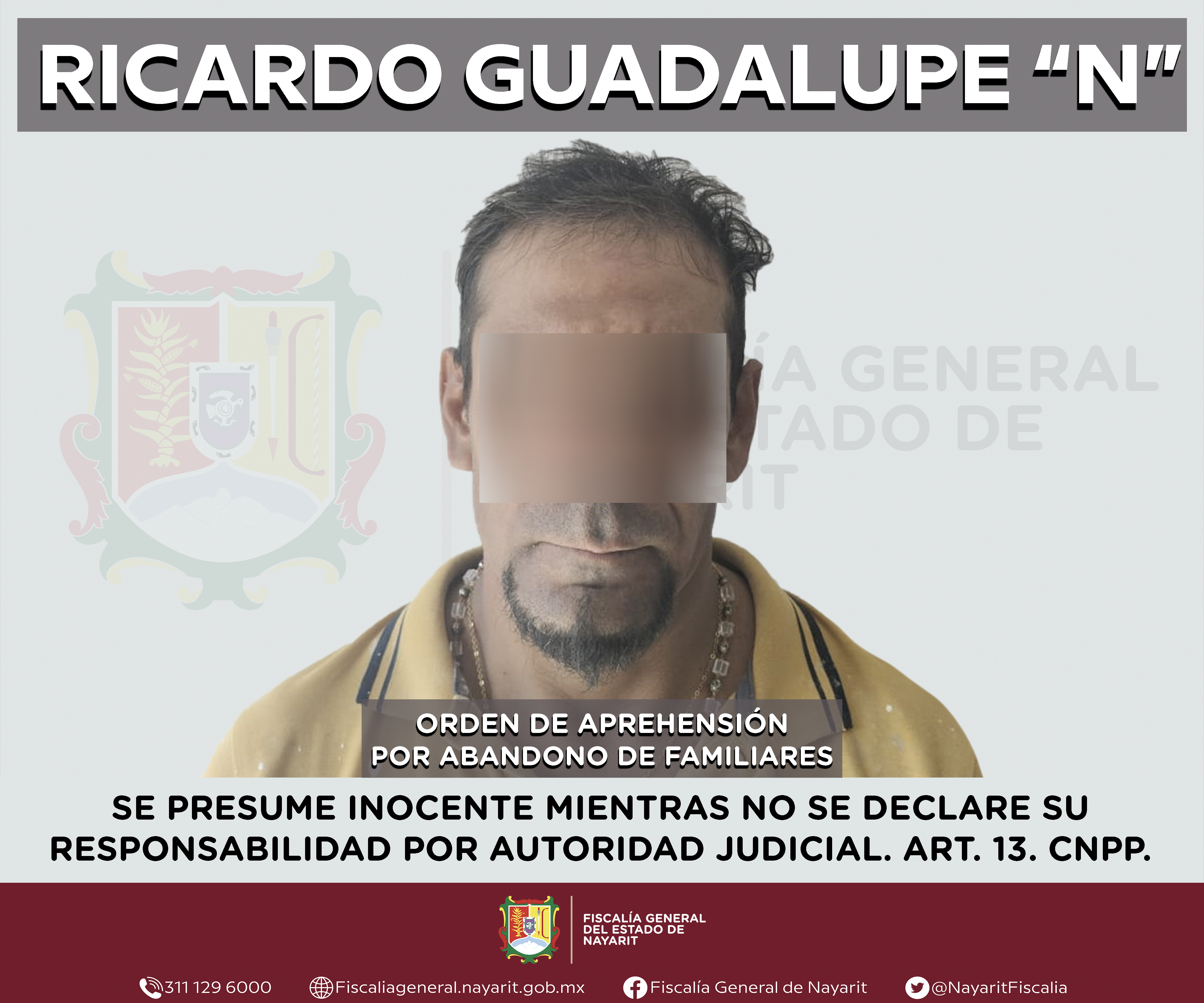 La Fiscalía General de Nayarit a través de la Agencia de Investigación Criminal ejecutó una orden de aprehensión en el municipio de Ixtlán del Río contra Ricardo Guadalupe “N”, por su presunta participación en hechos que según apreciación d...