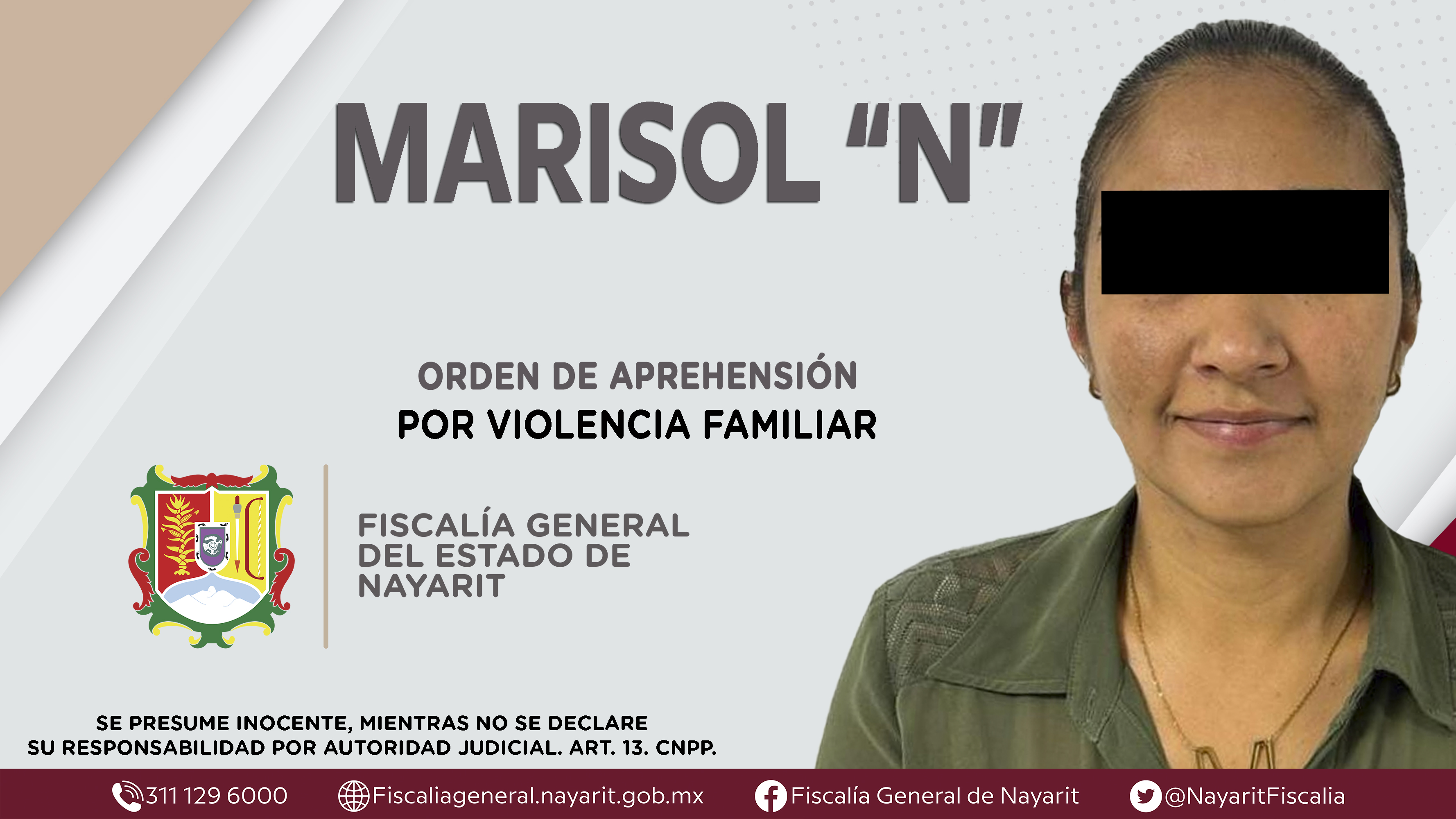 La Fiscalía General del Estado a través de la Agencia de Investigación Criminal dio cumplimiento a una orden de aprehensión en la ciudad de Tepic contra Marisol “N”, por su presunta participación en hechos que según apreciación de la ley encua...