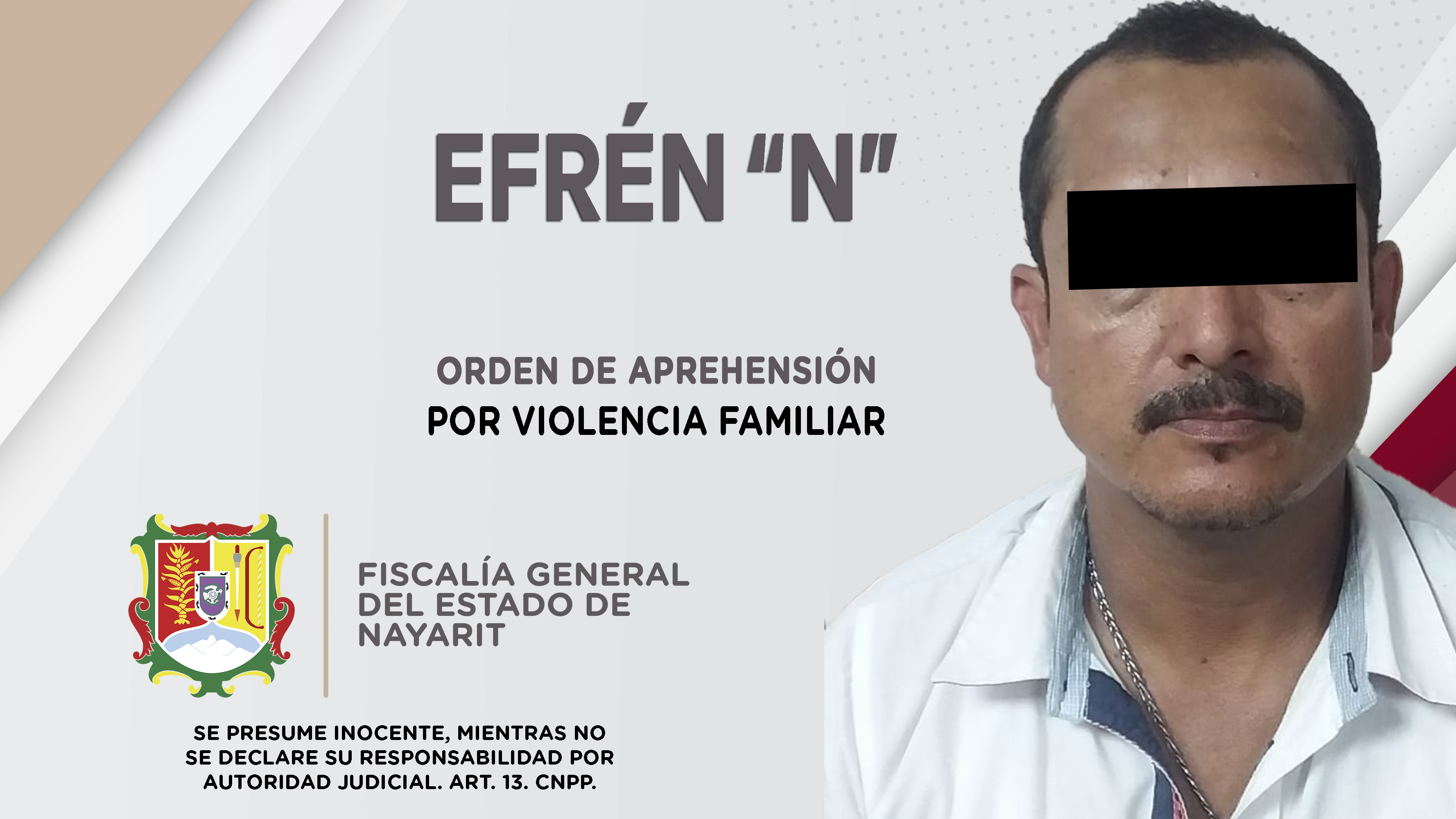 La Fiscalía General del estado de Nayarit, a través de personal de la Agencia de Investigación Criminal, dio cumplimiento a una orden de aprehensión la cual se ejecutó contra Efrén “N”, por su probable participación en hechos que la ley califi...
