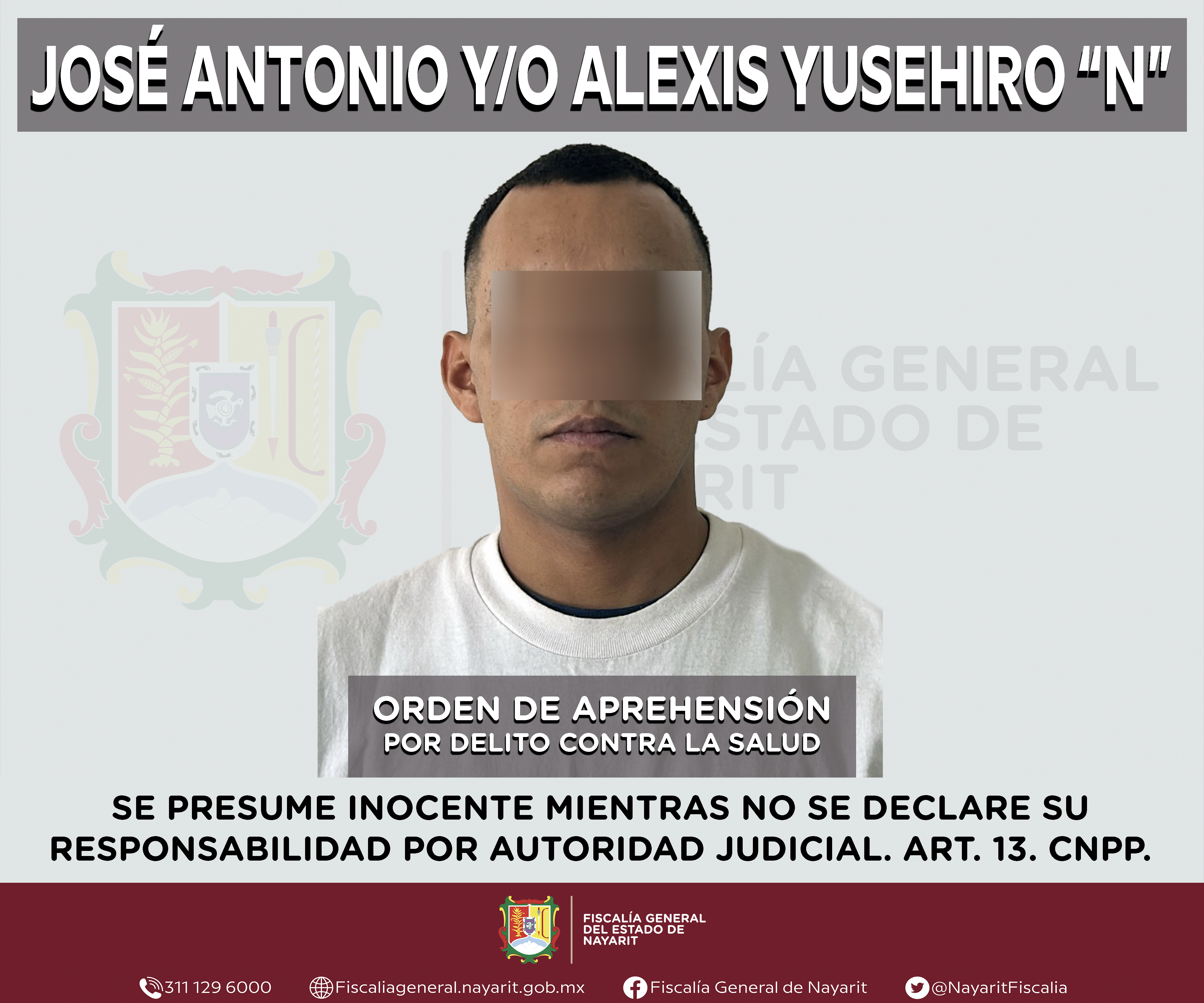 Elementos de la Agencia de Investigación Criminal de Nayarit ejecutaron una orden de aprehensión en la capital nayarita contra José Antonio “N” y/o Alexis Yusehiro “N”, por su presunta participación en hechos que bajo la apreciación de la le...