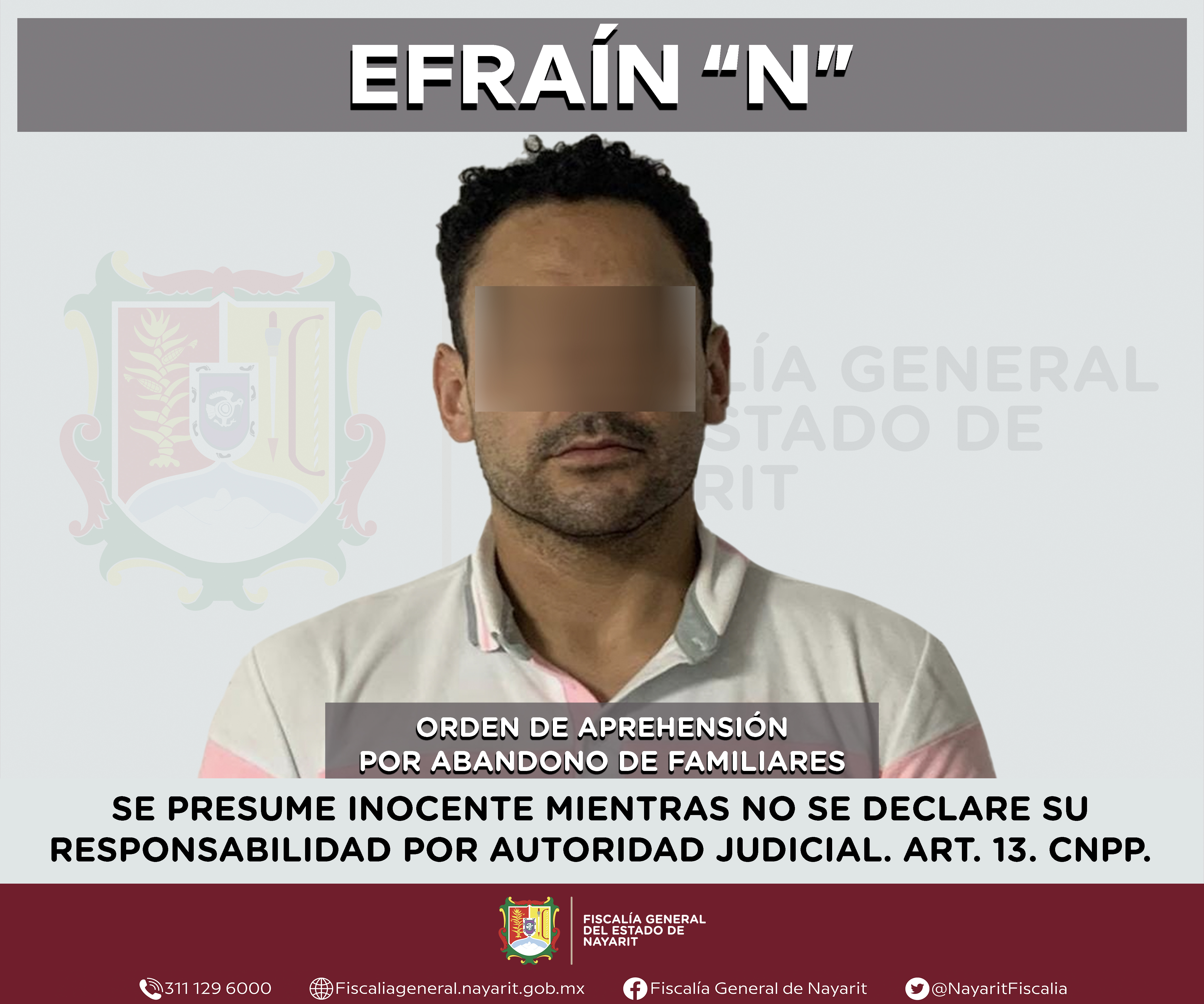 Elementos de la Agencia de Investigación Criminal de Nayarit ejecutaron una orden de aprehensión contra Efraín “N”, por su presunta participación en hechos que según apreciación de la ley encuadran el delito de abandono de familiares, cometido ...