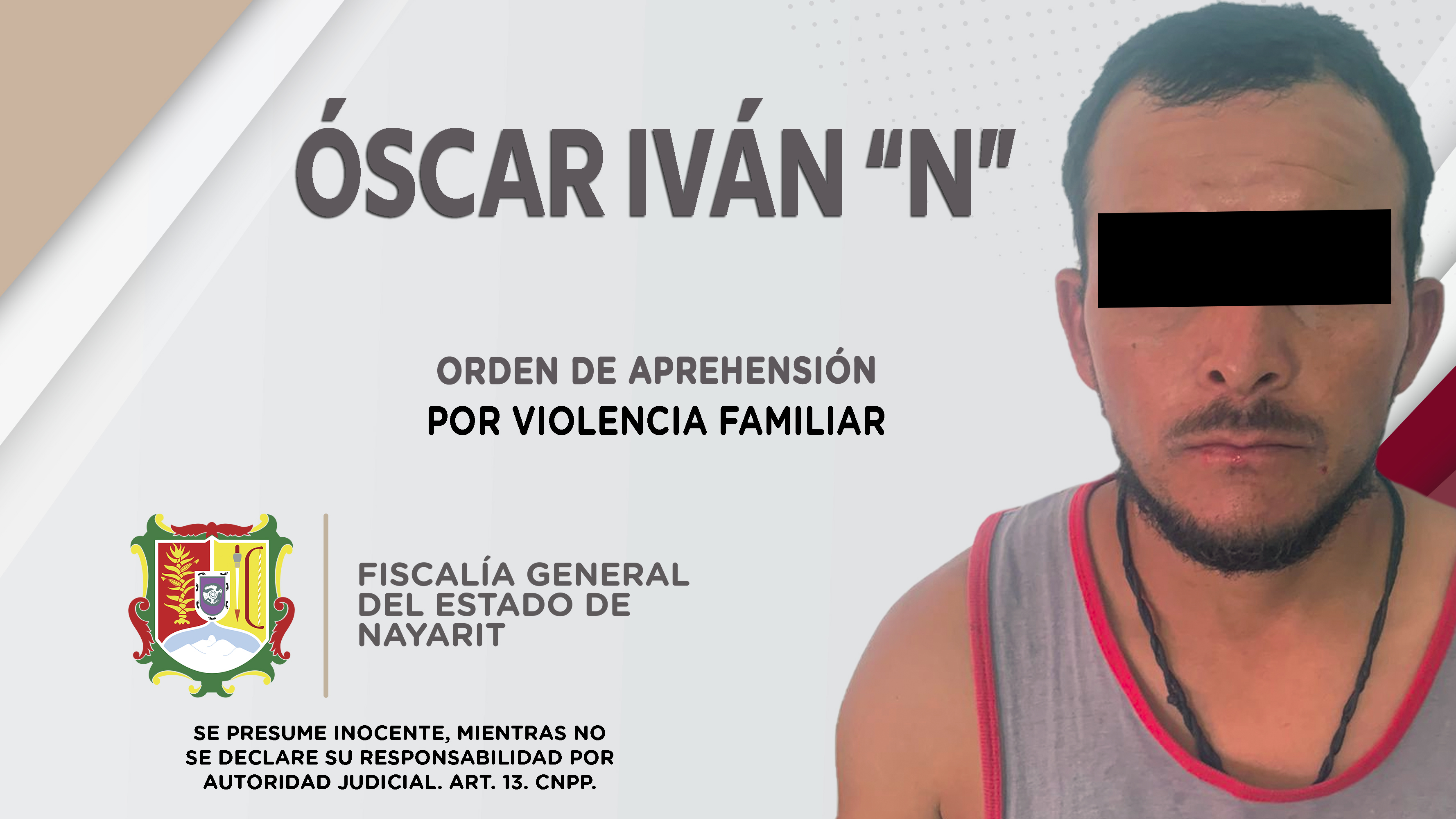 En el municipio de Ruiz, personal de la Agencia de Investigación Criminal de Nayarit dio cumplimiento a una orden de aprehensión contra Óscar Iván “N”, por su probable participación en hechos que para la ley constituyen el delito de violencia fa...