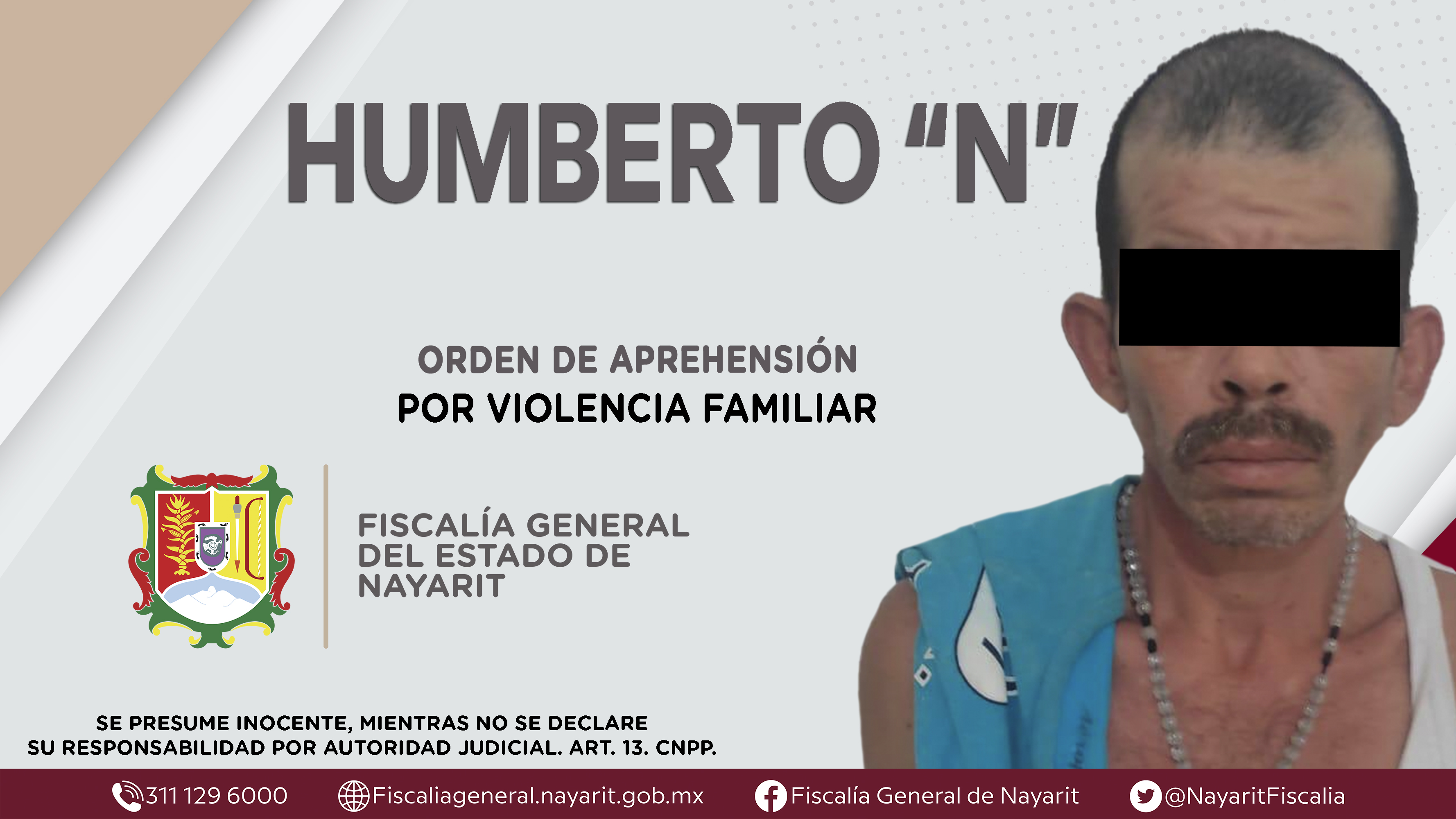 La Fiscalía General del Estado a través de la Agencia de Investigación Criminal dio cumplimiento a una orden de aprehensión en el poblado Estación Yago, municipio de Santiago Ixcuintla contra Humberto “N”, por su presunta participación en hecho...