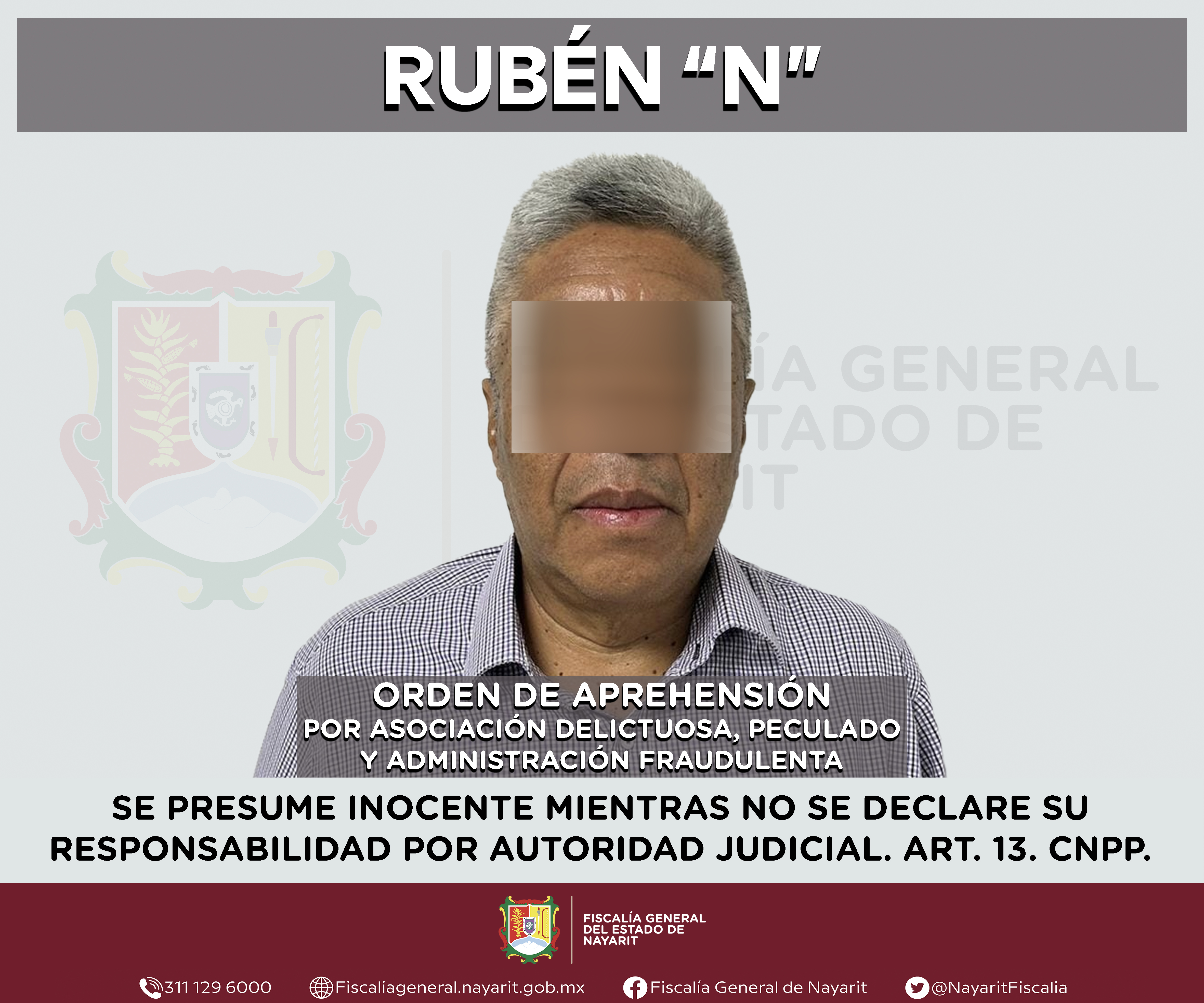 La Fiscalía General del Estado a través de la Agencia de Investigación Criminal dio cumplimiento a una orden de aprehensión en la capital nayarita contra Rubén “N”, por su presunta participación en hechos que según apreciación de la ley confi...