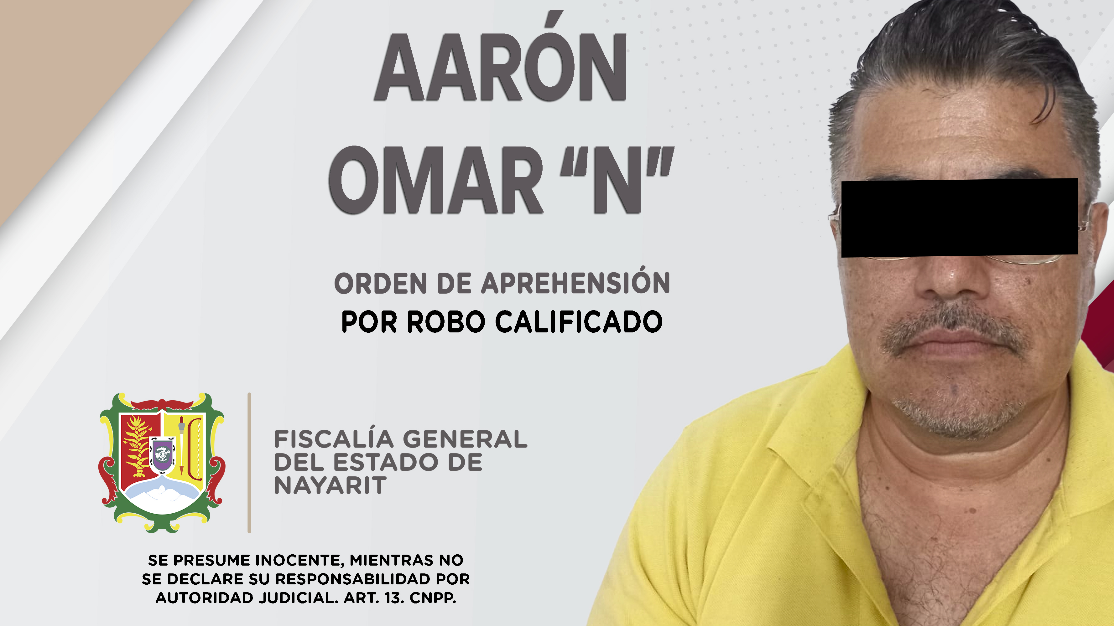 En el municipio de Tuxpan, elementos de la Agencia de Investigación Criminal de Nayarit dieron cumplimiento a una orden de reaprehensión que se obsequió contra Aarón Omar “N”, por su probable participación en hechos que la ley califica como deli...