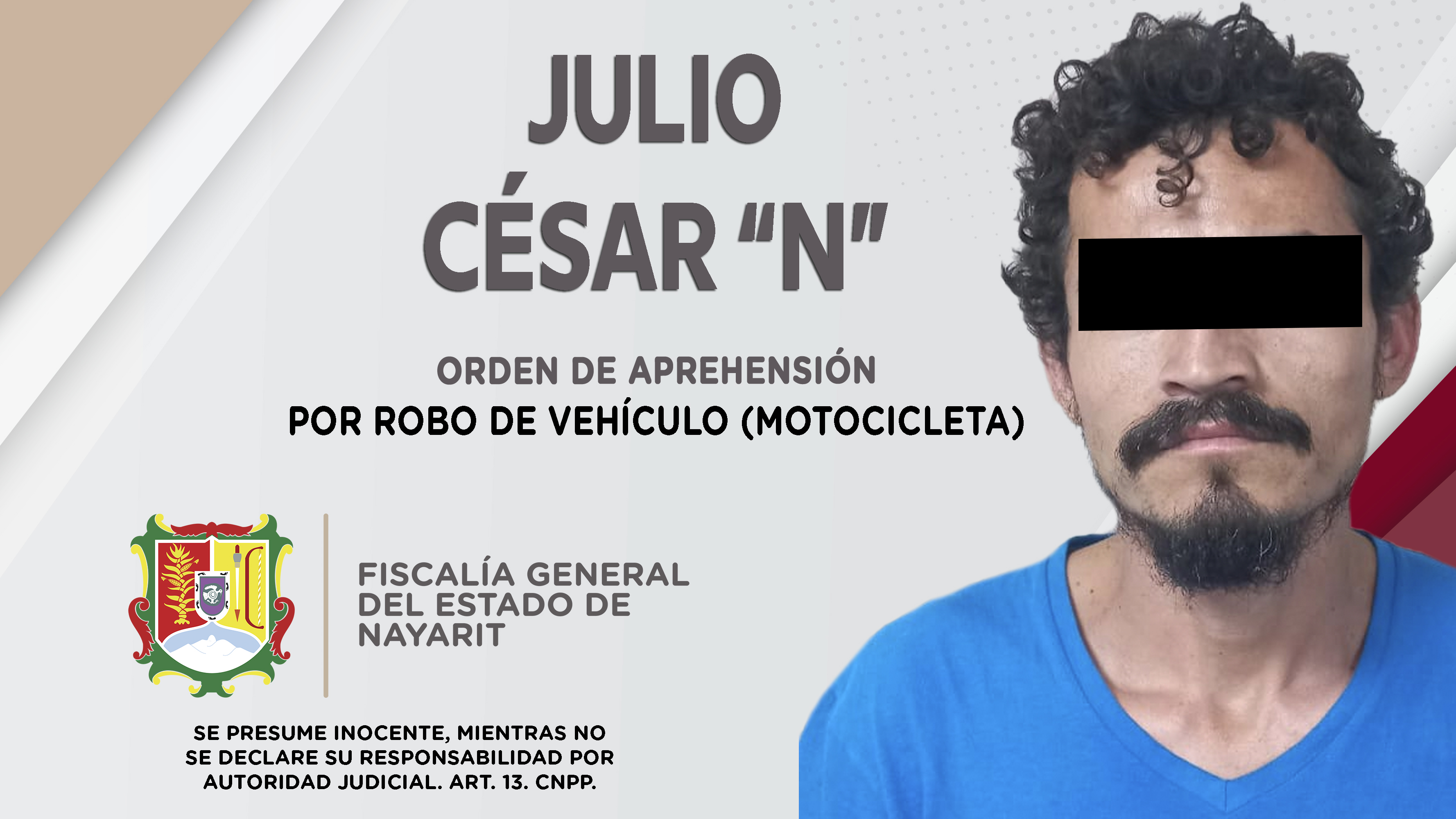 La Fiscalía General del estado de Nayarit a través del Agencia de Investigación Criminal, dio cumplimiento a una orden de aprehensión en la ciudad de Tepic, la cual se ejecutó contra Julio César “N”, por su probable participación en hechos que...