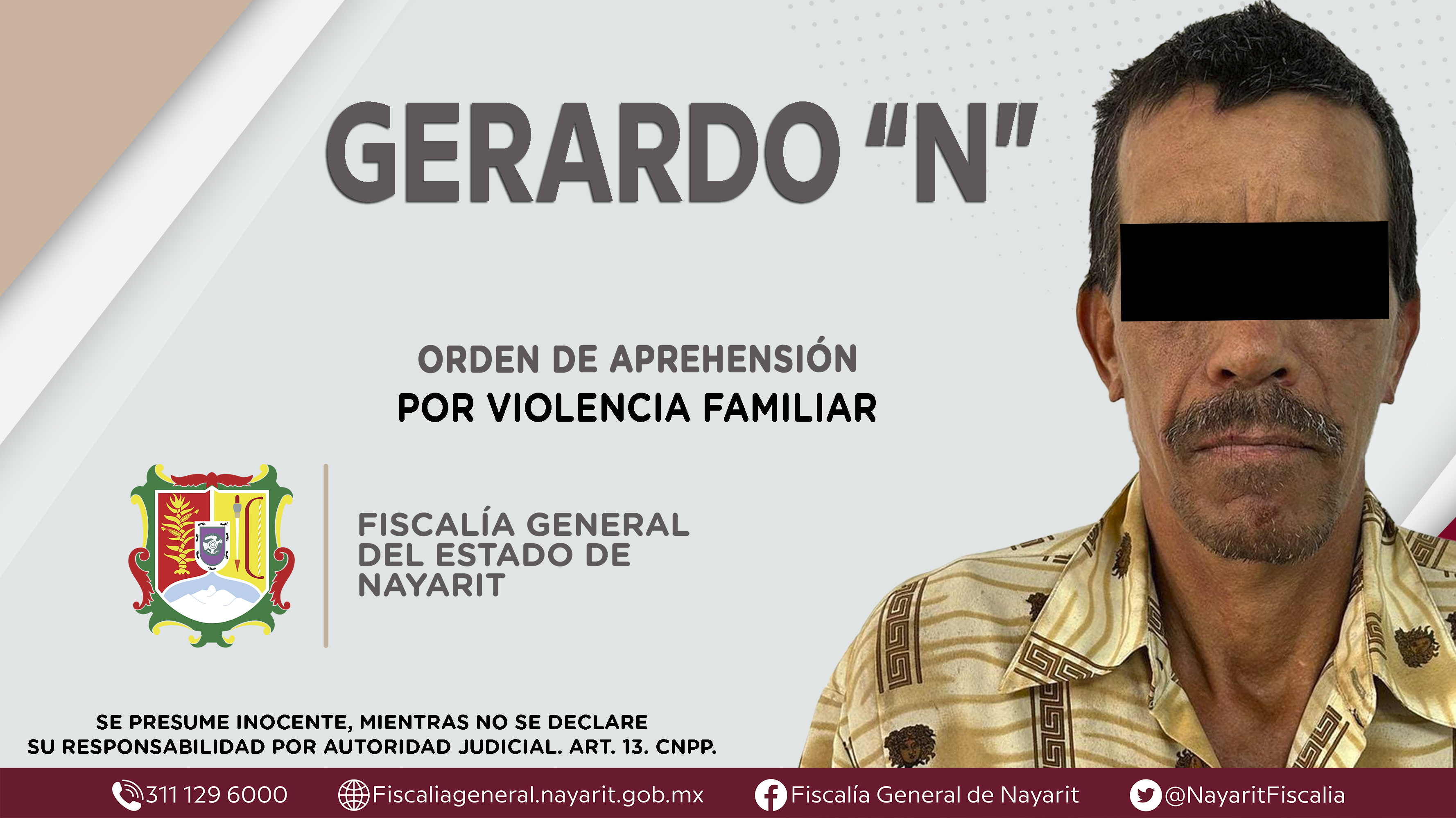 Elementos de la Agencia de Investigación Criminal de Nayarit ejecutaron una orden de aprehensión en la ciudad de Tepic contra Gerardo “N”, por su presunta participación en hechos que según apreciación de la ley configuran el delito de violencia ...