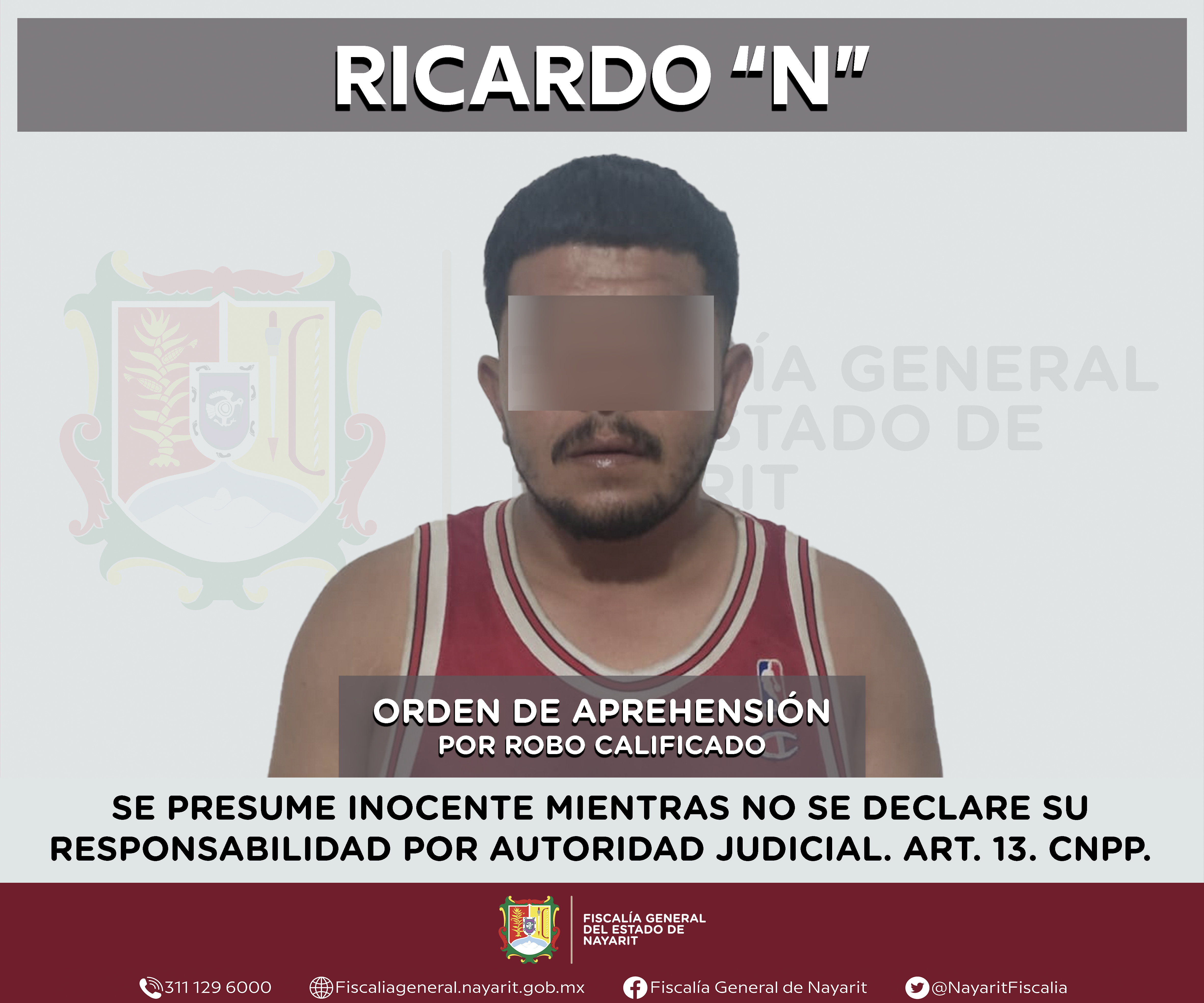 La Fiscalía General del estado de Nayarit a través de la Agencia de Investigación Criminal ejecutó una orden de aprehensión en la localidad Sentispac, municipio de Santiago Ixcuintla contra Ricardo “N”, por su presunta participación en hechos q...