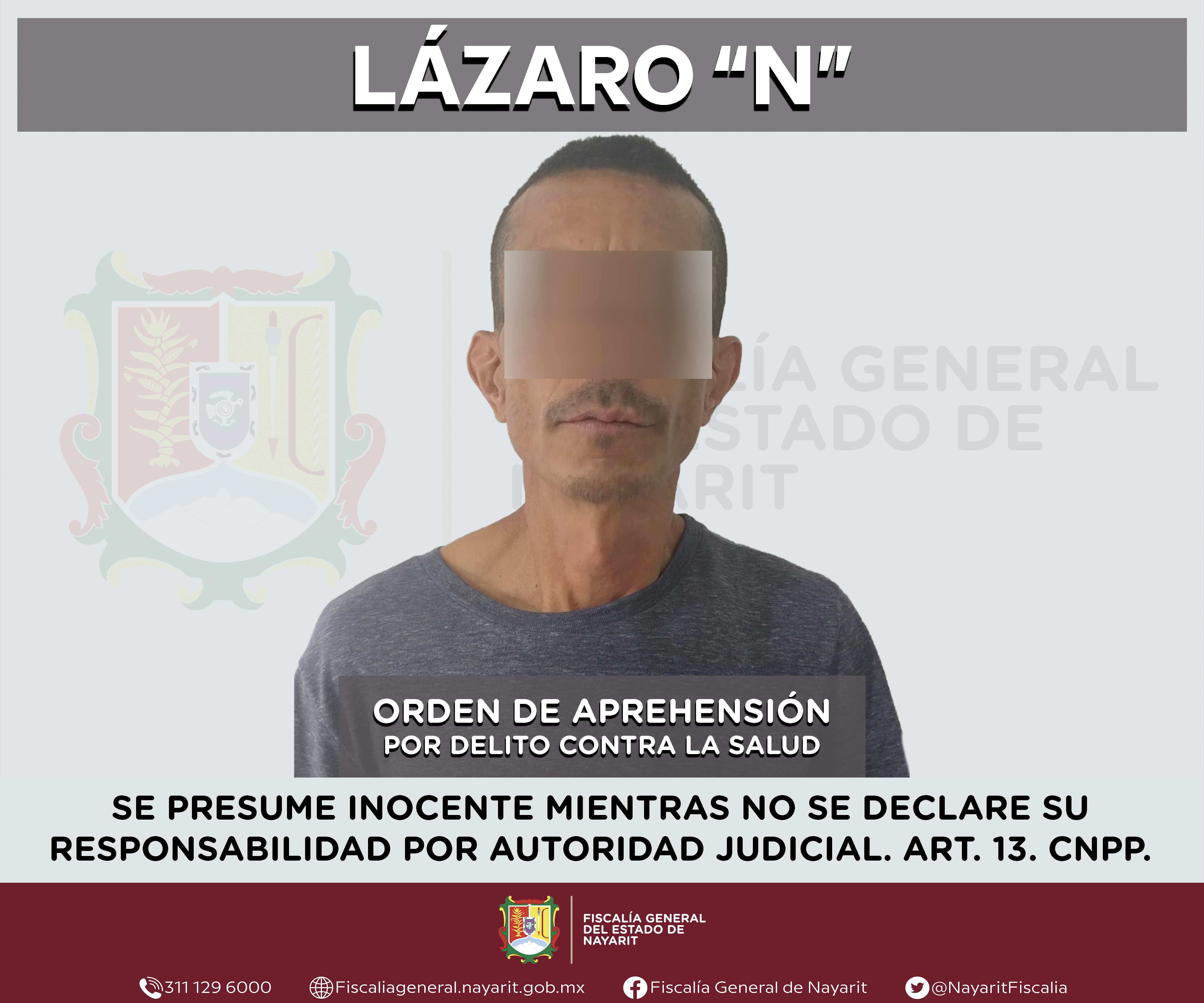 Elementos de la Agencia de Investigación Criminal de Nayarit ejecutaron una orden de aprehensión en la capital nayarita contra Lázaro “N”, por su presunta participación en hechos que según valoración de la ley configuran el delito contra la sal...