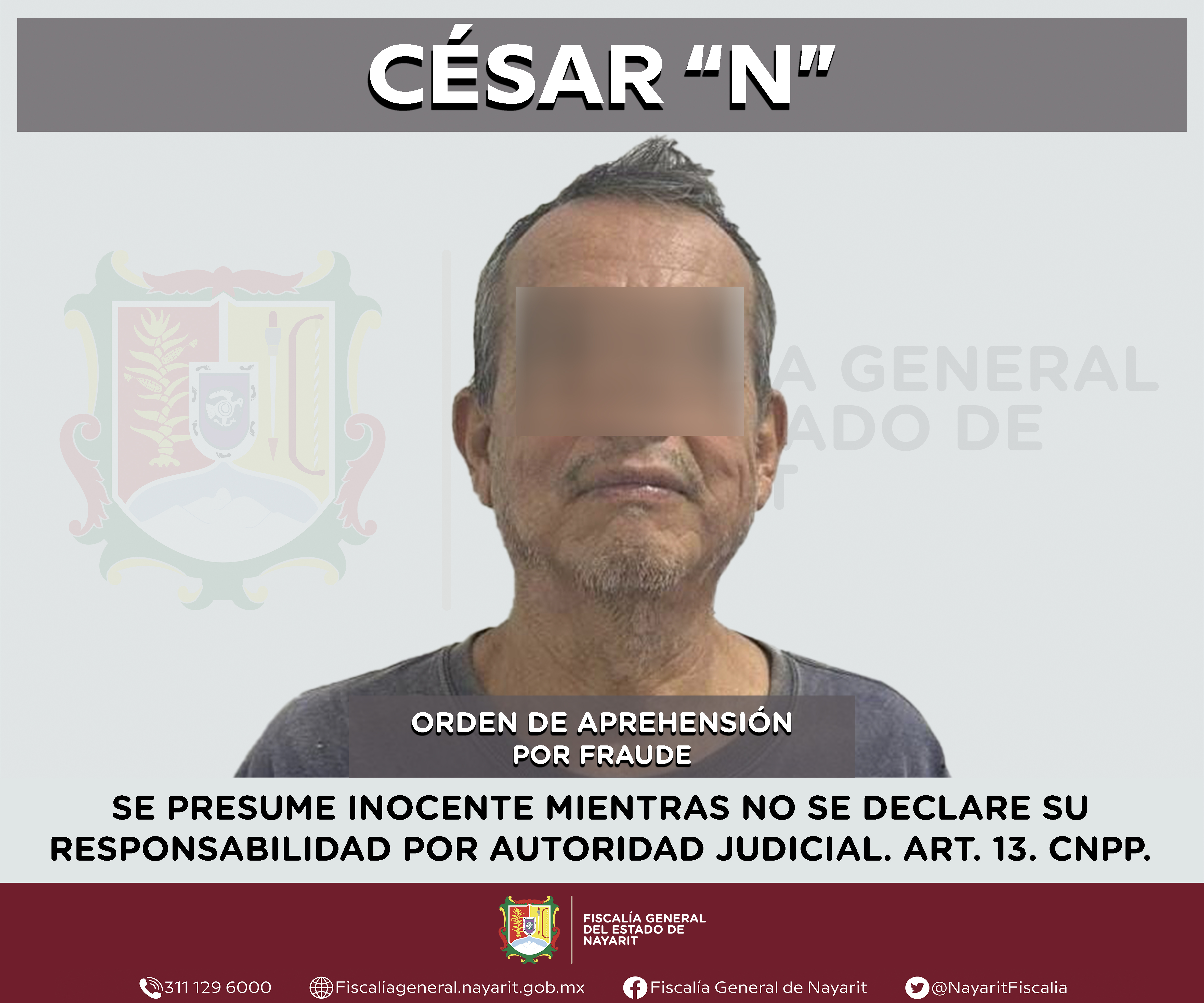 Elementos de la Agencia de Investigación Criminal de Nayarit ejecutaron una orden de aprehensión en la capital nayarita contra César “N”, por su presunta participación en hechos que según apreciación de la ley encuadran el delito de fraude, com...