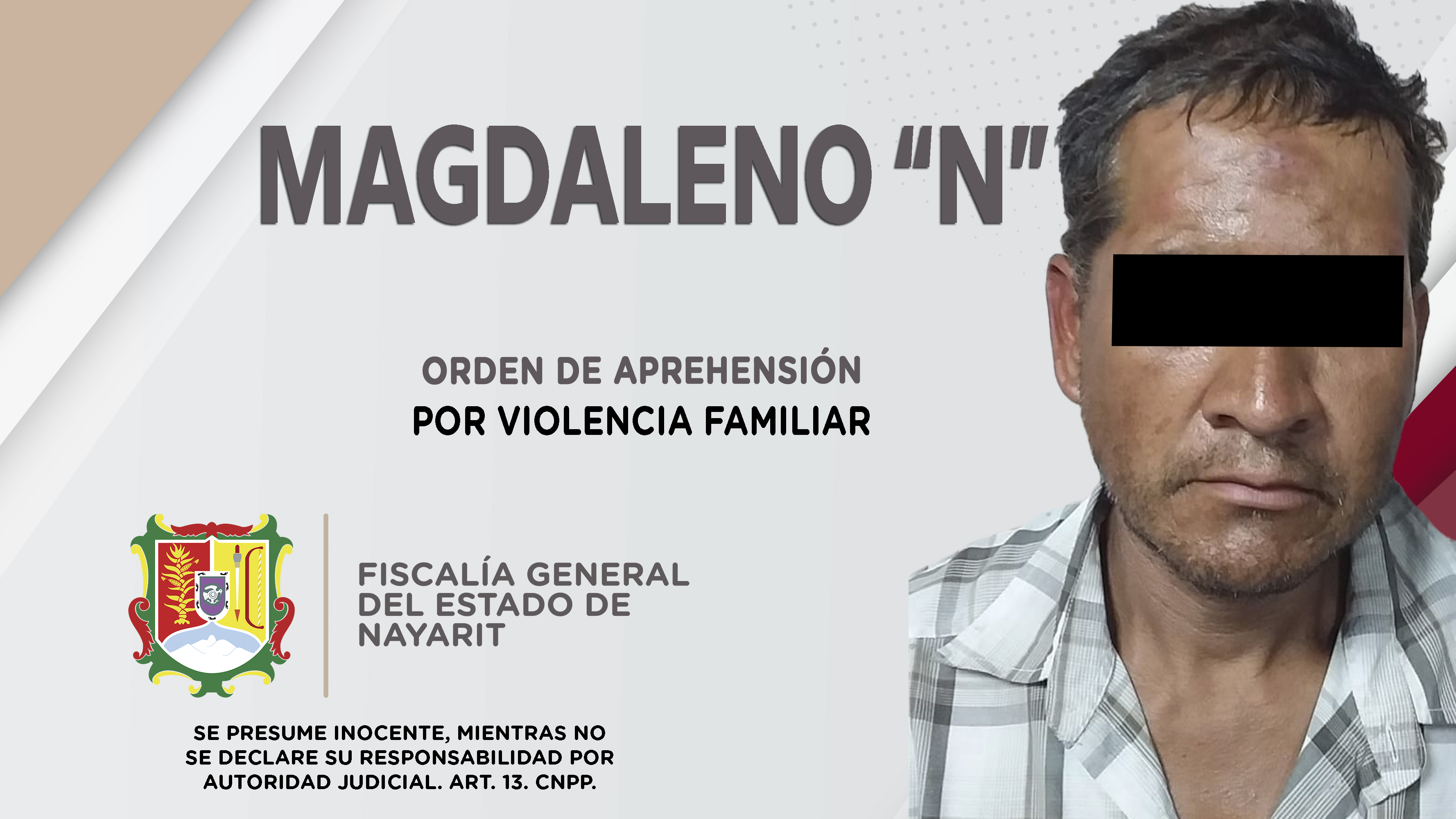 En la capital nayarita, elementos de la Agencia de Investigación Criminal de Nayarit dieron cumplimiento a una orden de aprehensión que se obsequió contra Magdaleno “N”, por su probable participación en hechos que la ley califica como delito de v...