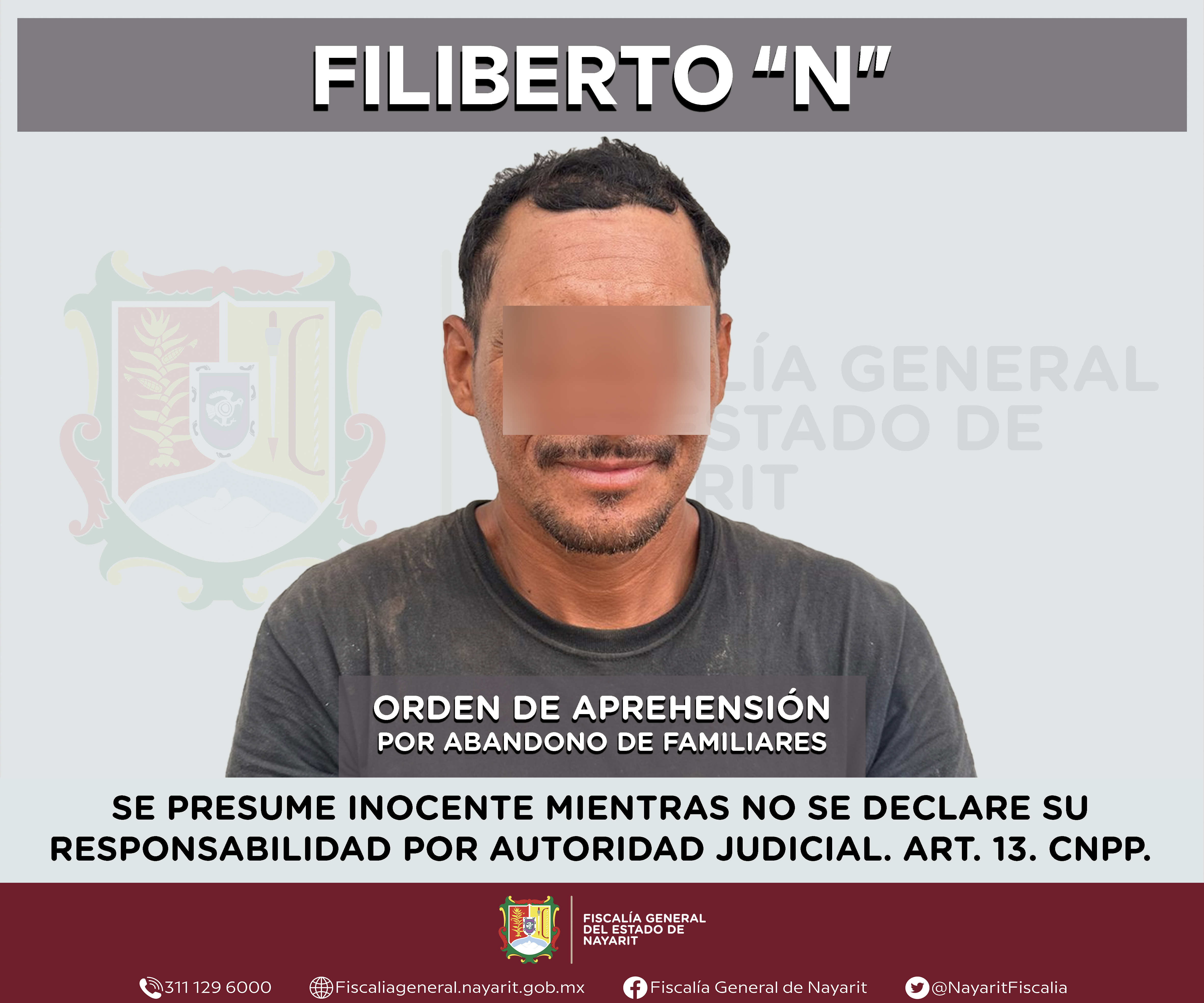 La Fiscalía General del estado de Nayarit a través de la Agencia de Investigación Criminal ejecutó una orden de aprehensión en la localidad Coamiles, municipio de Tuxpan contra Filiberto “N”, por su presunta participación en hechos que según v...