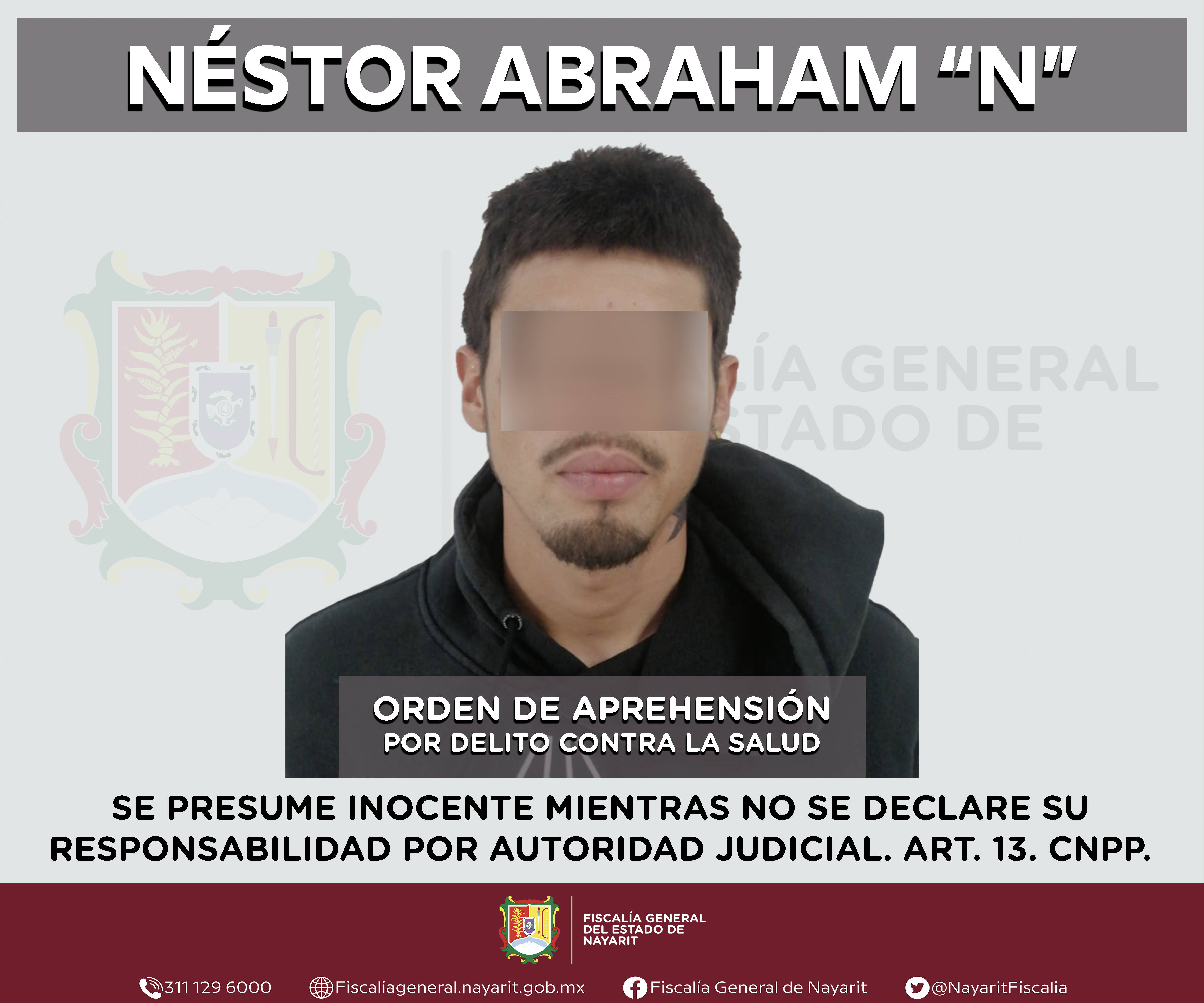 La Fiscalía General del estado de Nayarit a través de la Agencia de Investigación Criminal ejecutó una orden de aprehensión en la ciudad de Tepic contra Néstor Abraham “N”, por su presunta participación en hechos que según valoración de la l...