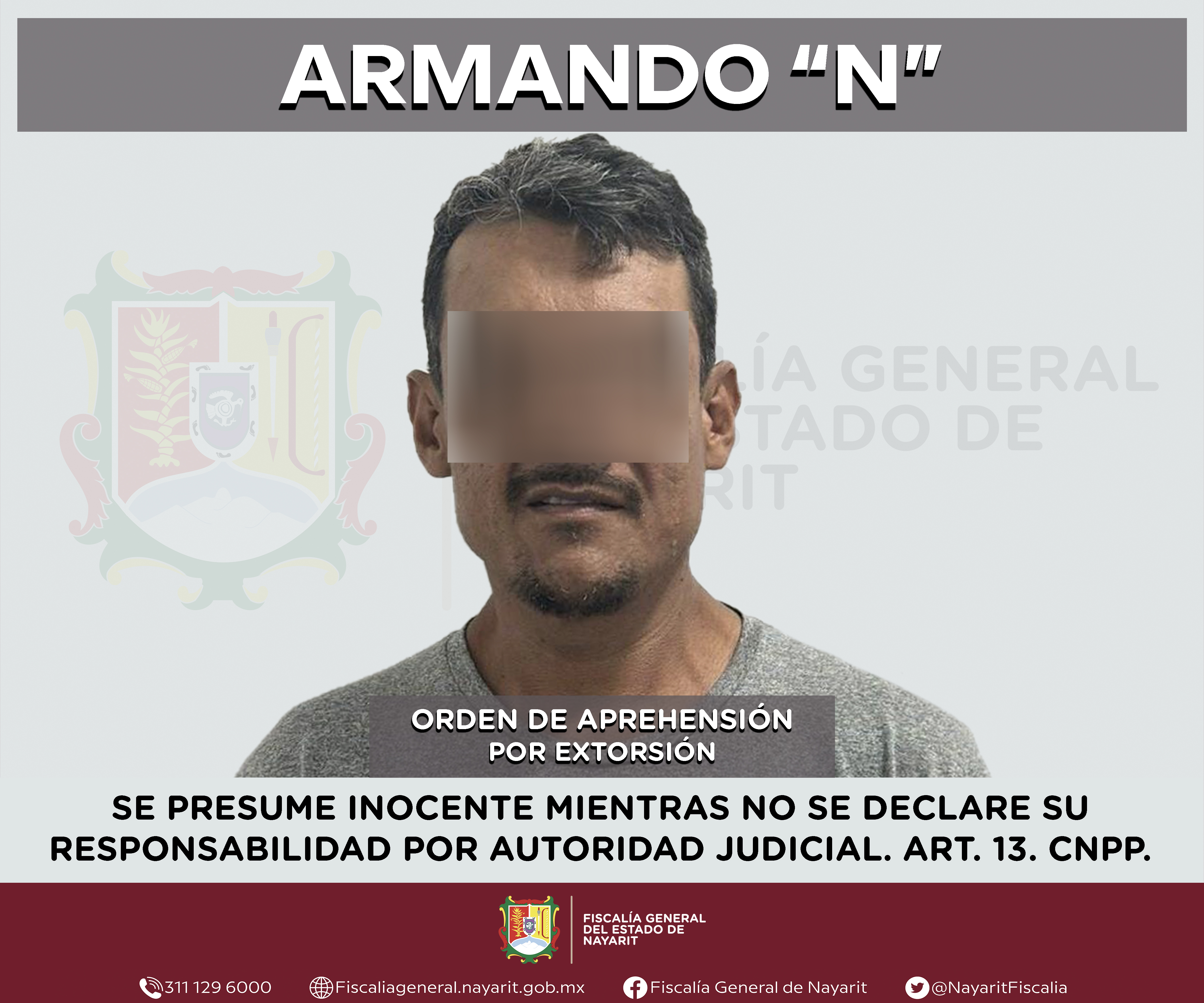 La Fiscalía General de Nayarit a través de la Agencia de Investigación Criminal ejecutó una orden de aprehensión en la ciudad de Tepic contra Armando “N”, por su probable participación en hechos que para la ley configuran el delito de extorsió...
