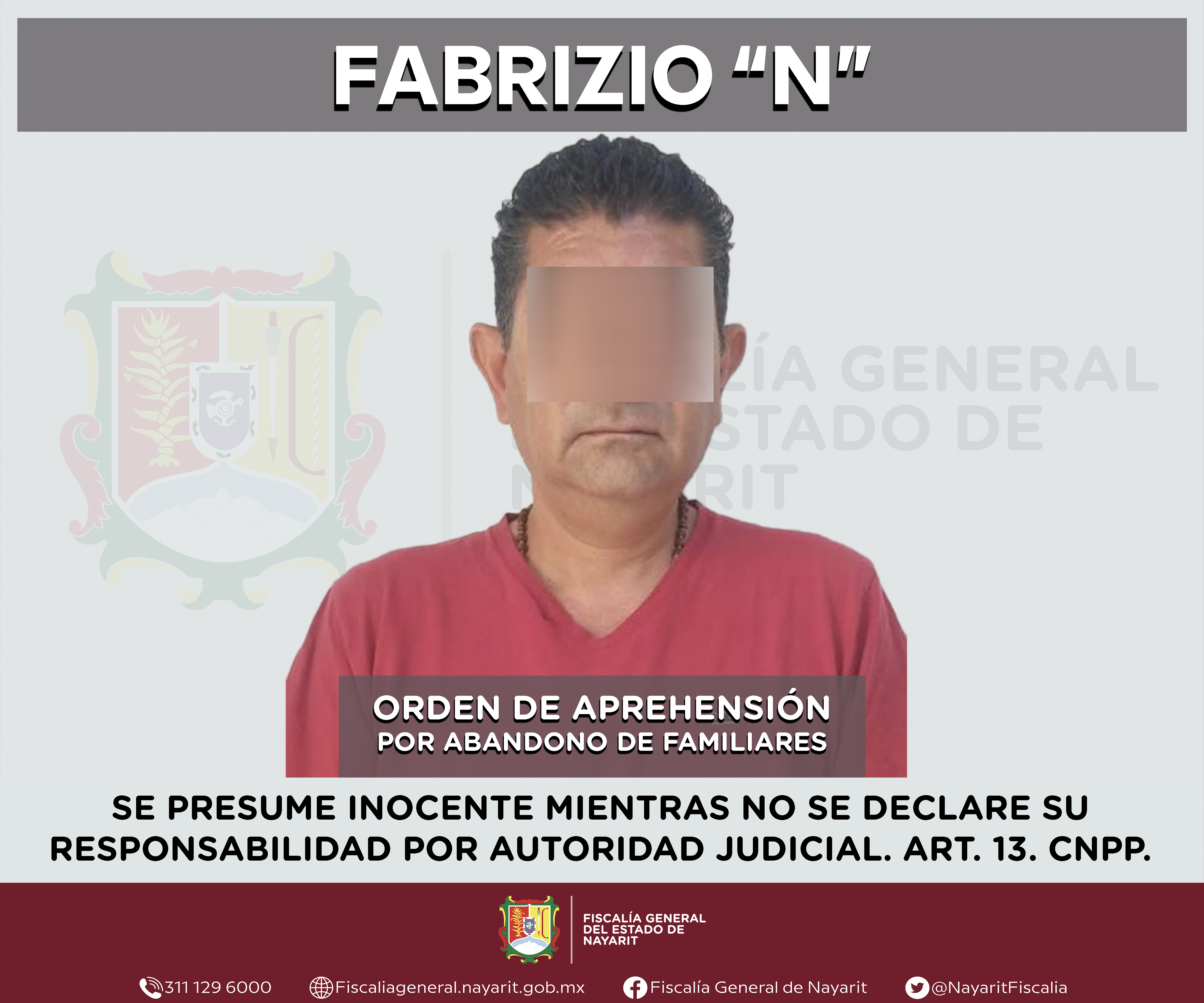 La Fiscalía General del estado de Nayarit a través de la Agencia de Investigación Criminal ejecutó una orden de aprehensión en la capital nayarita contra Fabrizio “N”, por su presunta participación en hechos que según valoración de la ley enc...