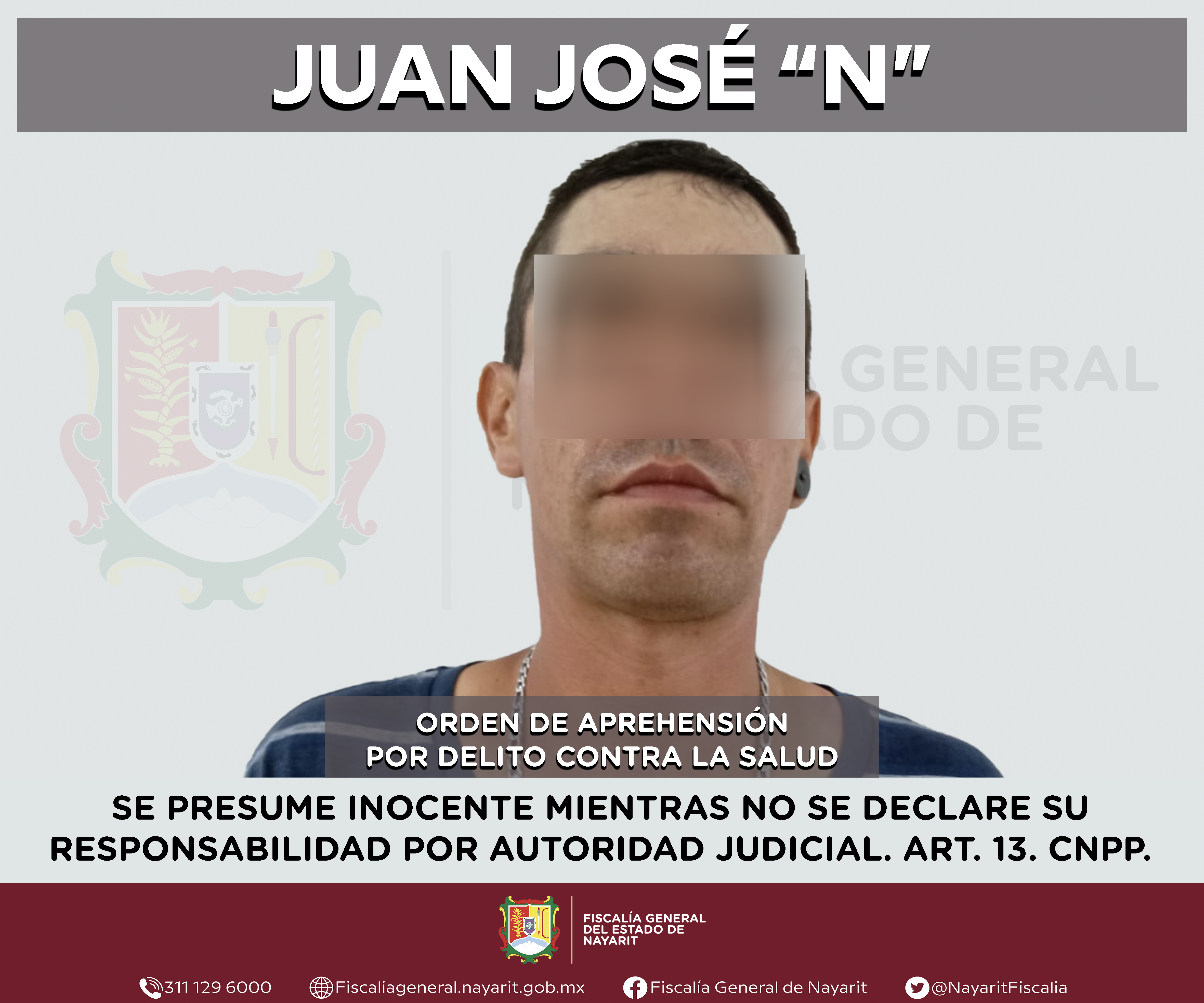 Elementos de la Agencia de Investigación Criminal de Nayarit ejecutaron una orden de aprehensión contra Juan José “N”, por su presunta participación en hechos que según apreciación de la ley encuadran el delito contra la salud en su modalidad d...