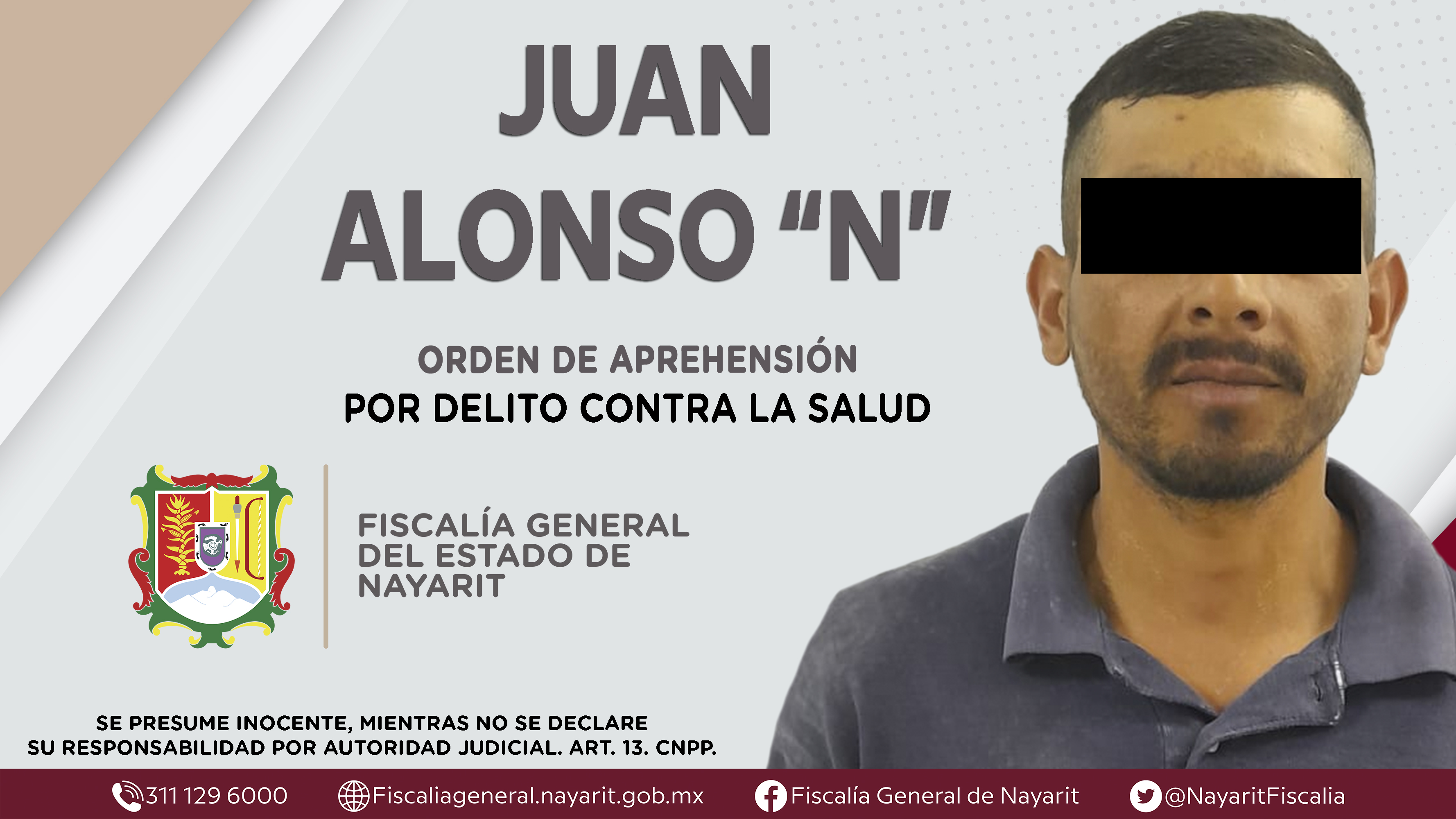 La Fiscalía General del Estado a través de la Agencia de Investigación Criminal dio cumplimiento a una orden de reaprehensión en la capital nayarita contra Juan Alonso “N”, por su presunta participación en hechos que según apreciación de la le...