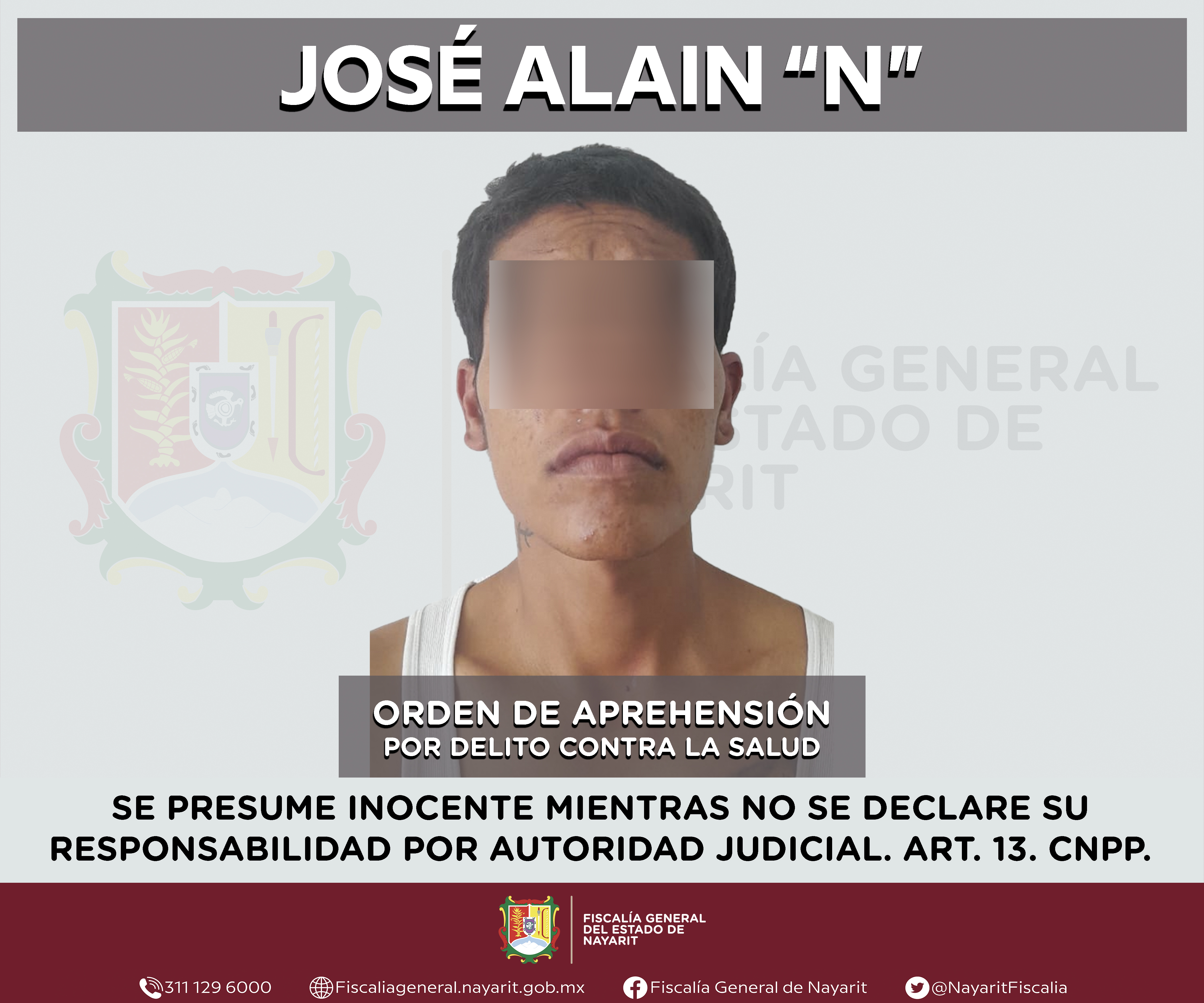Elementos de la Agencia de Investigación Criminal de Nayarit ejecutaron una orden de aprehensión en la capital nayarita contra José Alain “N”, por su presunta participación en hechos que según valoración de la ley configuran el delito contra la...