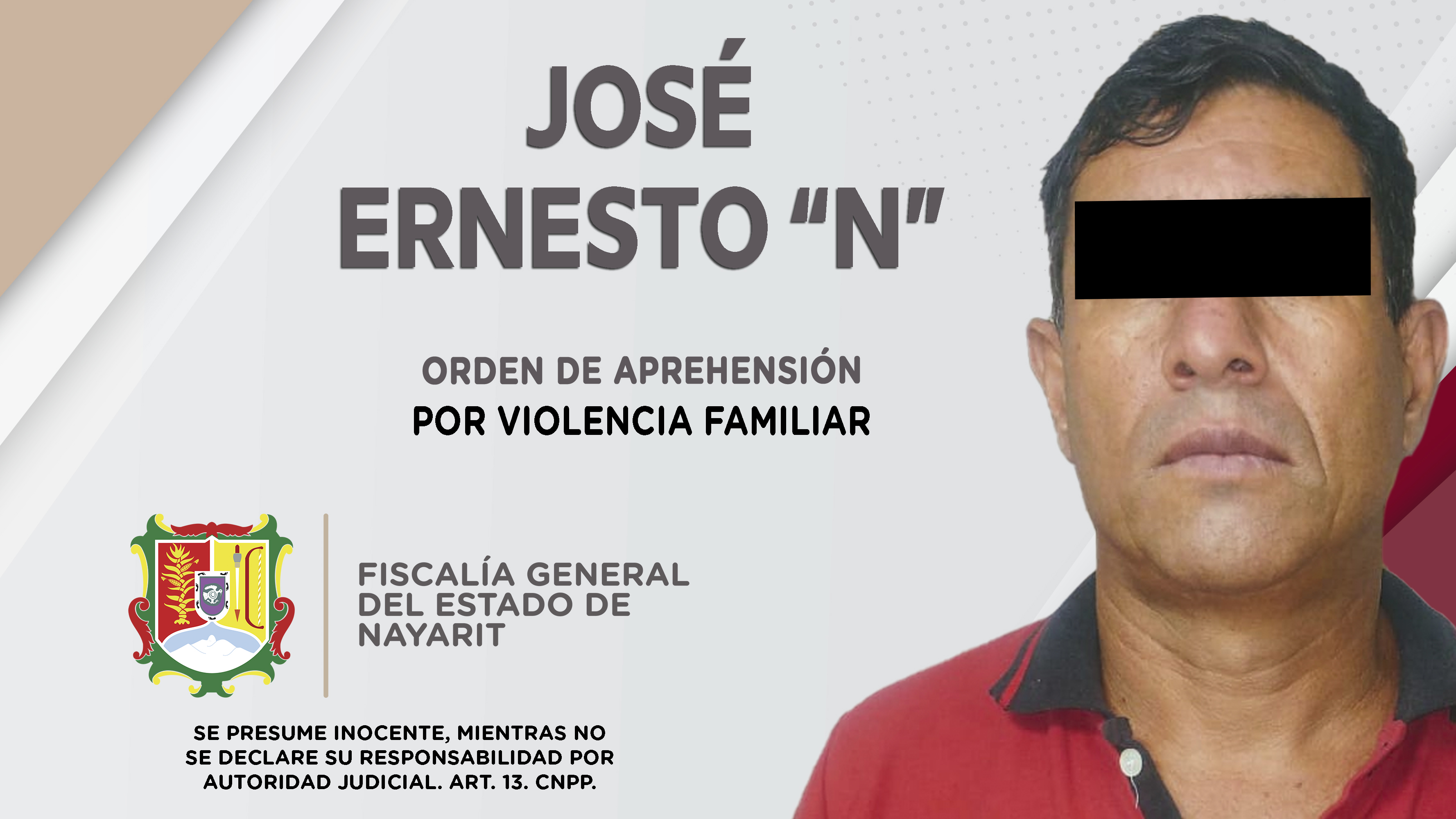 Personal de la Agencia de Investigación Criminal de Nayarit ejecutó una orden de aprehensión en la ciudad de Tepic contra José Ernesto “N”, porque se presume su responsabilidad penal en hechos que según la ley configuran el delito de violencia f...